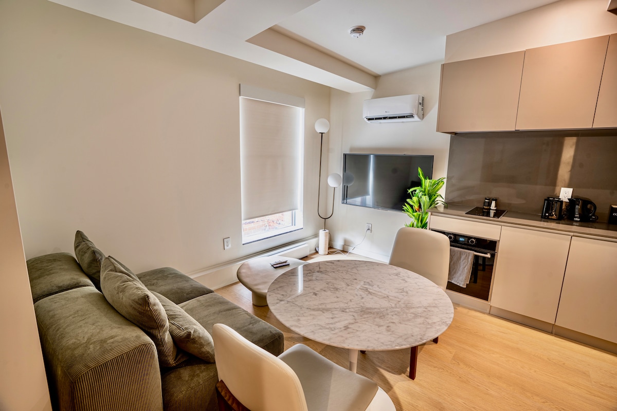 Merħba fl-unità stilizzata tagħna ta' kamra tas-sodda waħda ġewwa Little Italy, Montreal! Iddisinjat għall-kumdità u l-kumdità, l-ispazju tagħna huwa perfett għall-vjaġġaturi fuq xogħol. Aċċessibbli minn lift komuni f' bini miżmum sew, gawdi atmosfera mill-isbaħ. Irrilassa f' sodda komda ta' daqs queen, uża l-kċina mgħammra b' kollox u rrilassa fil-kamra tal-banju u l-banju spazjużi. Żomm kuntatt mal-wifi bla ħlas u ma' Netflix u gawdi minn sett ta' kumditajiet tal-bidu ta' merħba b' kafè u trattamenti friski.