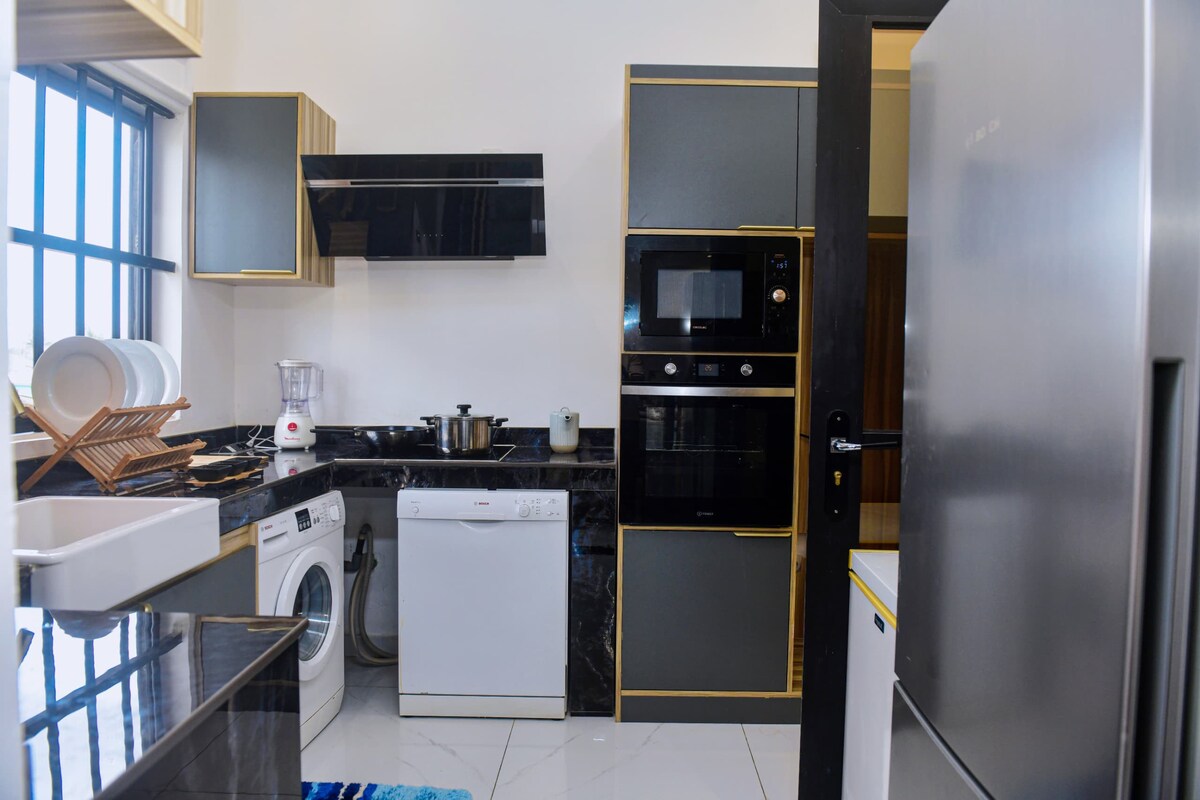 3 kmamar tas-sodda, 3 dar tal-kamra tal-banju, salott kbir, kċina u gallarija, li jinsabu fl-ewwel sular f' Lomé (Baguida), 800 metru 'l bogħod mill-bajja. Aċċess ta' malajr għall-Grand Marché (12-il minuta) u l-Mużew Nazzjonali ta' Togo (15-il minuta). Mgħammra b' IPTV TV għall-kanali globali kollha bla ħlas. Possibbiltà ta' garaxx.
