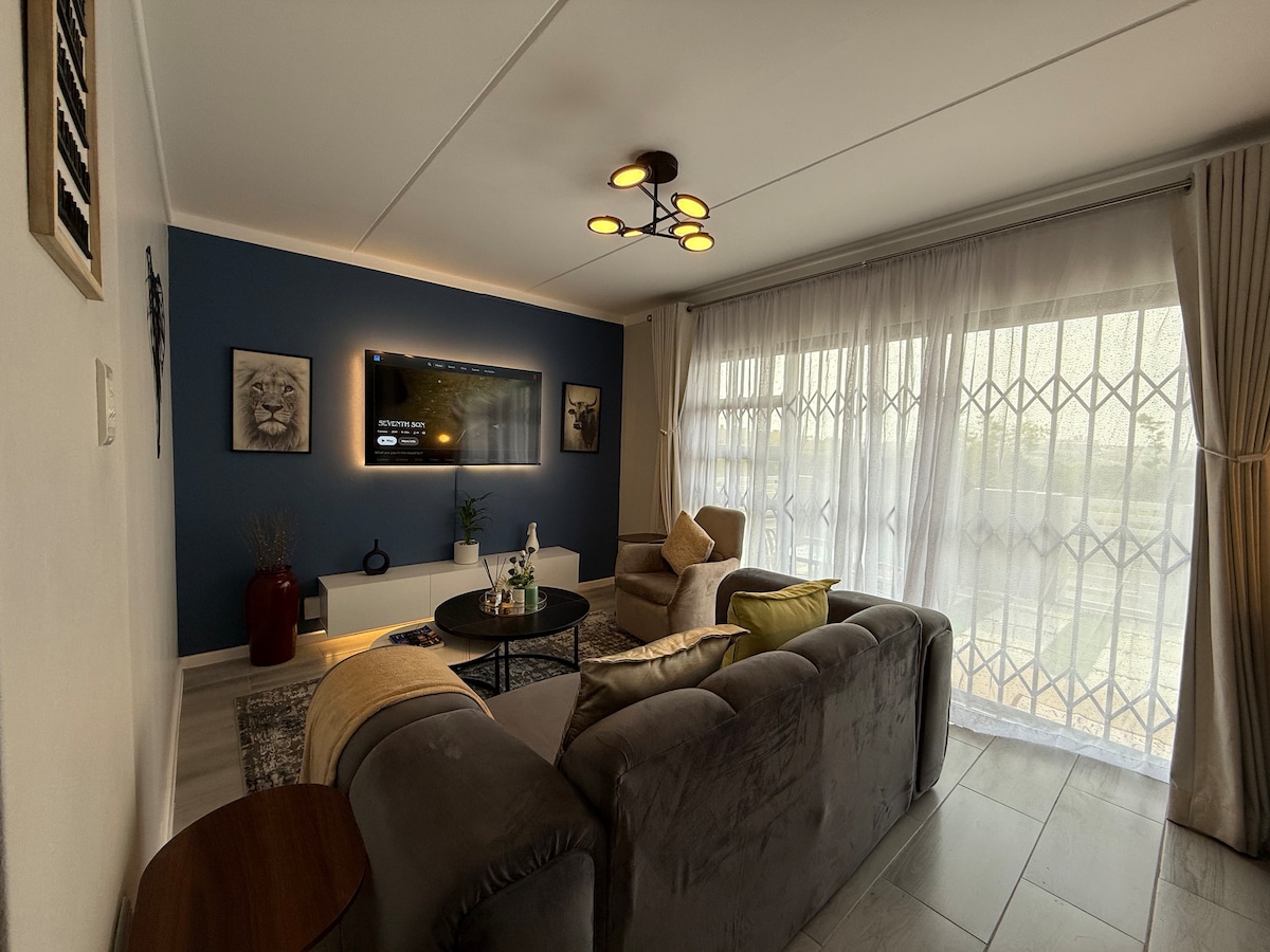 Appartament eżekuttiv modern, mgħammar kompletament, sigur u kwiet fil-qalba tal-Arkata ta 'Melrose. Hija l-vaganza perfetta fil-belt u hija adattata kemm għall-vjaġġi ta 'divertiment kif ukoll għax-xogħol. Internet b 'Fibri mhux mgħotti, ambjent sigur u kalm, inverter awtomatiku, TV ta' 82”(sala) kif ukoll TV ta' 37” (kamra tas-sodda) it-tnejn intelliġenti. Jinsabu b 'mod konvenjenti ġewwa Melrose Arch shopping b' aċċess għall-ħwienet u r-ristoranti kollha. Back up ġeneratur fil-bini, parkeġġ sigur u sigur b 'sigurtà 24 siegħa kuljum 😊