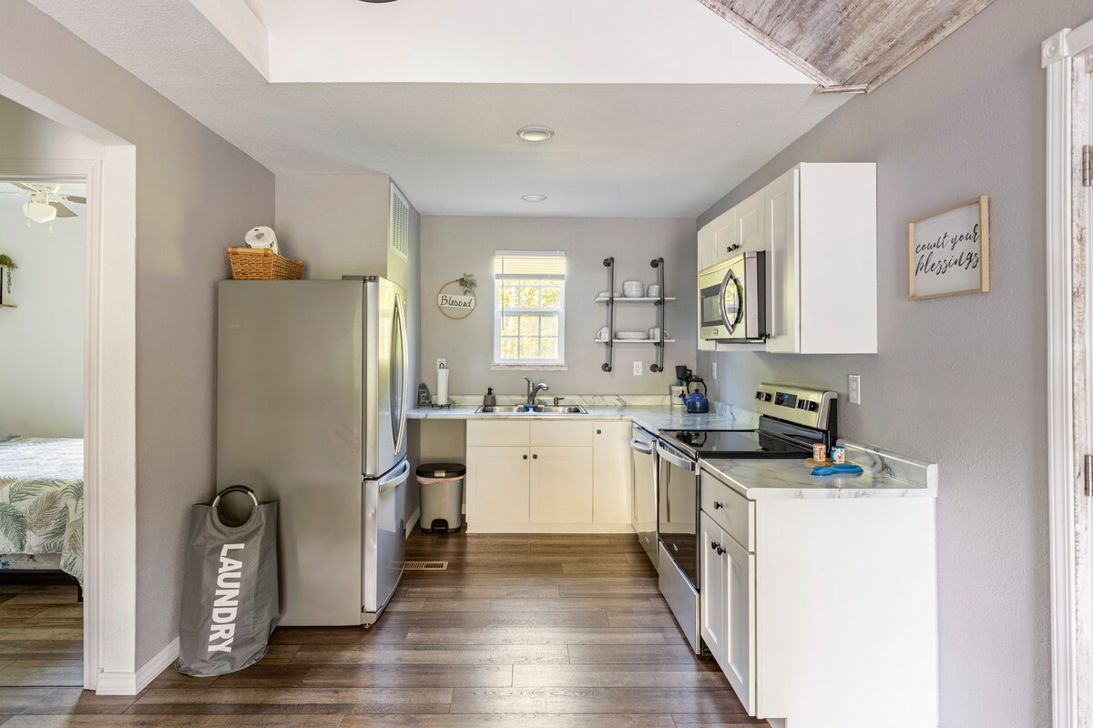 Gawdi żjara moderna sabiħa f 'din id-dar żgħira ħafna unika. Din hija mgħammra kompletament bi kċina kompluta, spazju fejn tgħix, kamra tas-sodda u kamra tal-banju kompluta. Għal dar żgħira ħafna, dal-post huwa impressjonanti! Hemm biżżejjed parkeġġ kif ukoll veranda ta 'quddiem ħelwa li tħares lejn bitħa sabiħa mdawra bl-imsaġar. Pożizzjonati b 'mod konvenjenti, perfett għal koppji jew singles, atmosfera mill-aqwa ġewwa u barra.