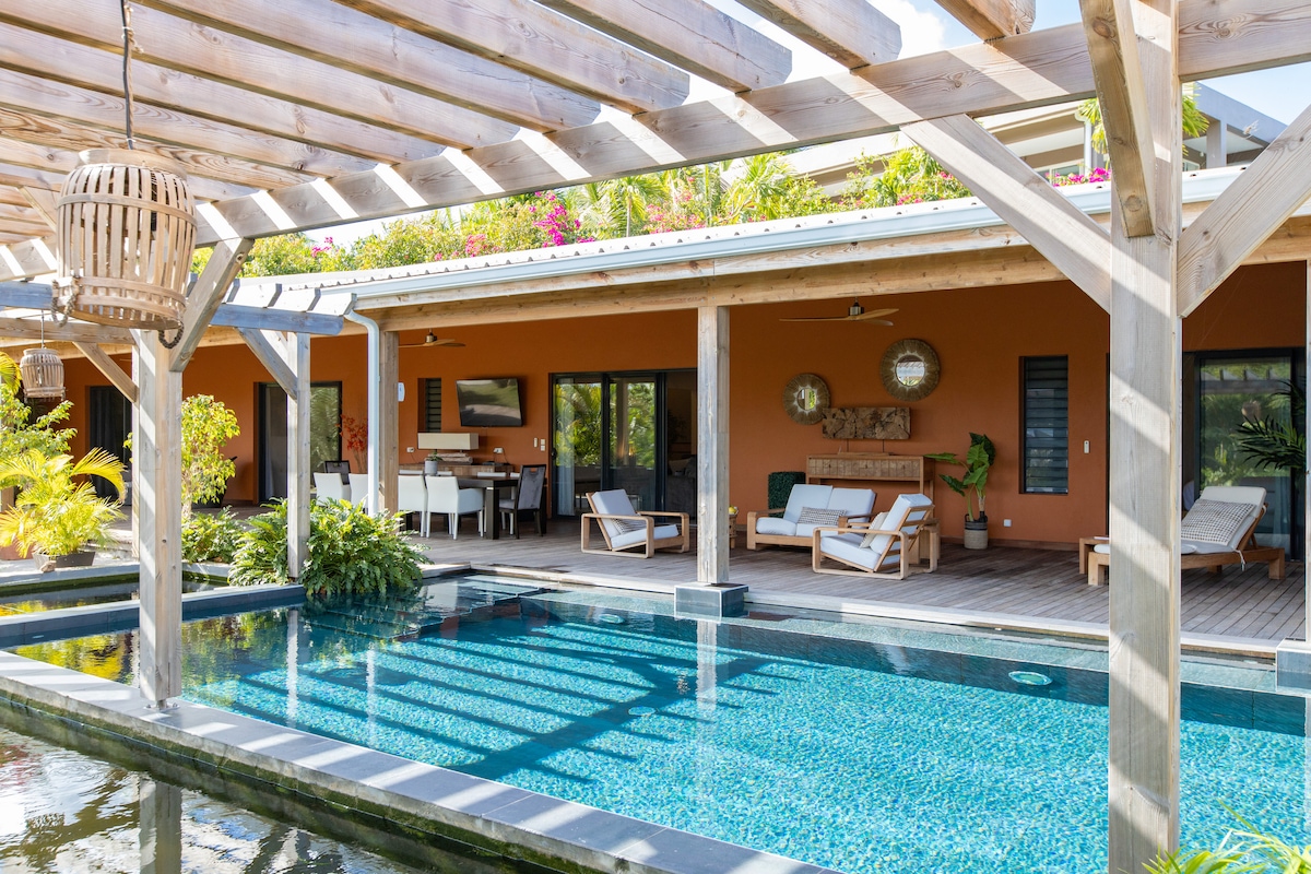 ✨ Perched above Friar’s Bay, this villa offers a breathtaking view from Maho to Anguilla. 🏡 3 ocean-view master suites, kitchen ready for a private chef. Upstairs, a covered terrace becomes a peaceful refuge facing the sea for up to 10 guests. 🌊 Pool surrounded by a suspended deck, pergola & evening serenity. 🌴 Gated residence, beaches within walking distance. Here, luxury, nature and sunsets are lived more than described.