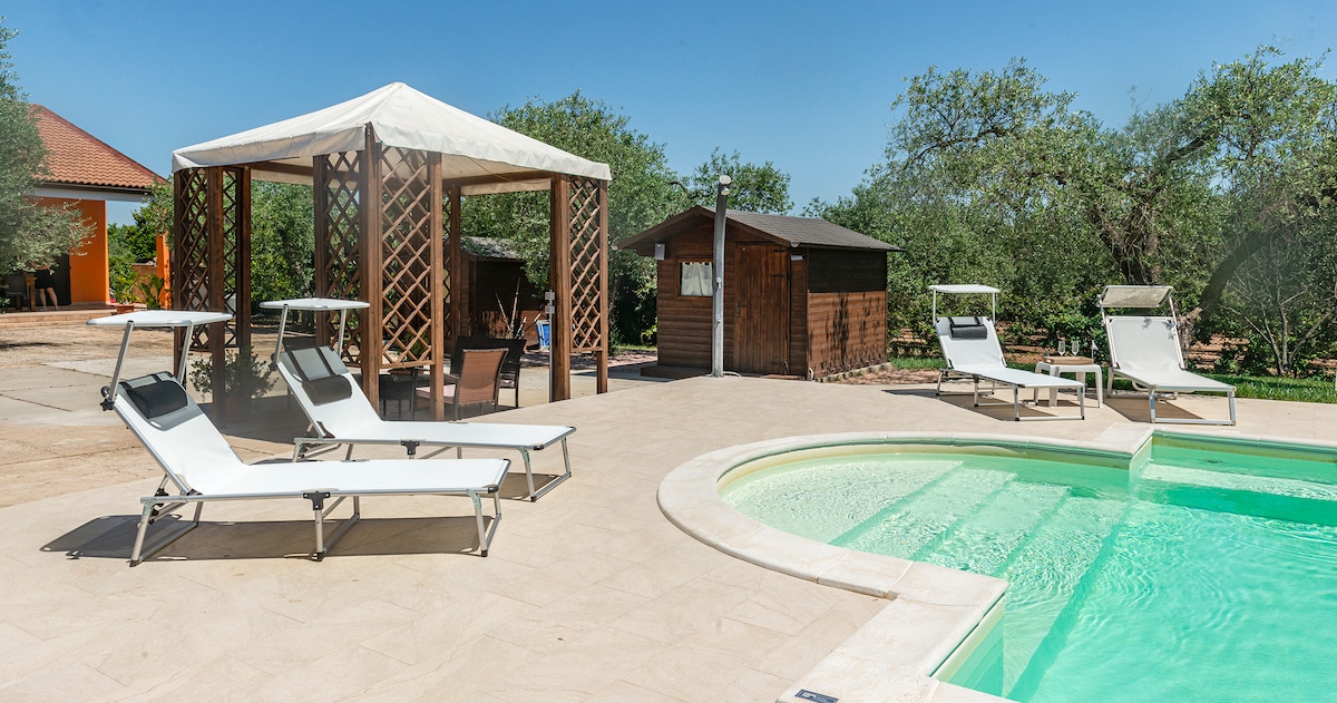 Ikri Villa b 'pixxina mdawra bis-siġar taż-żebbuġ