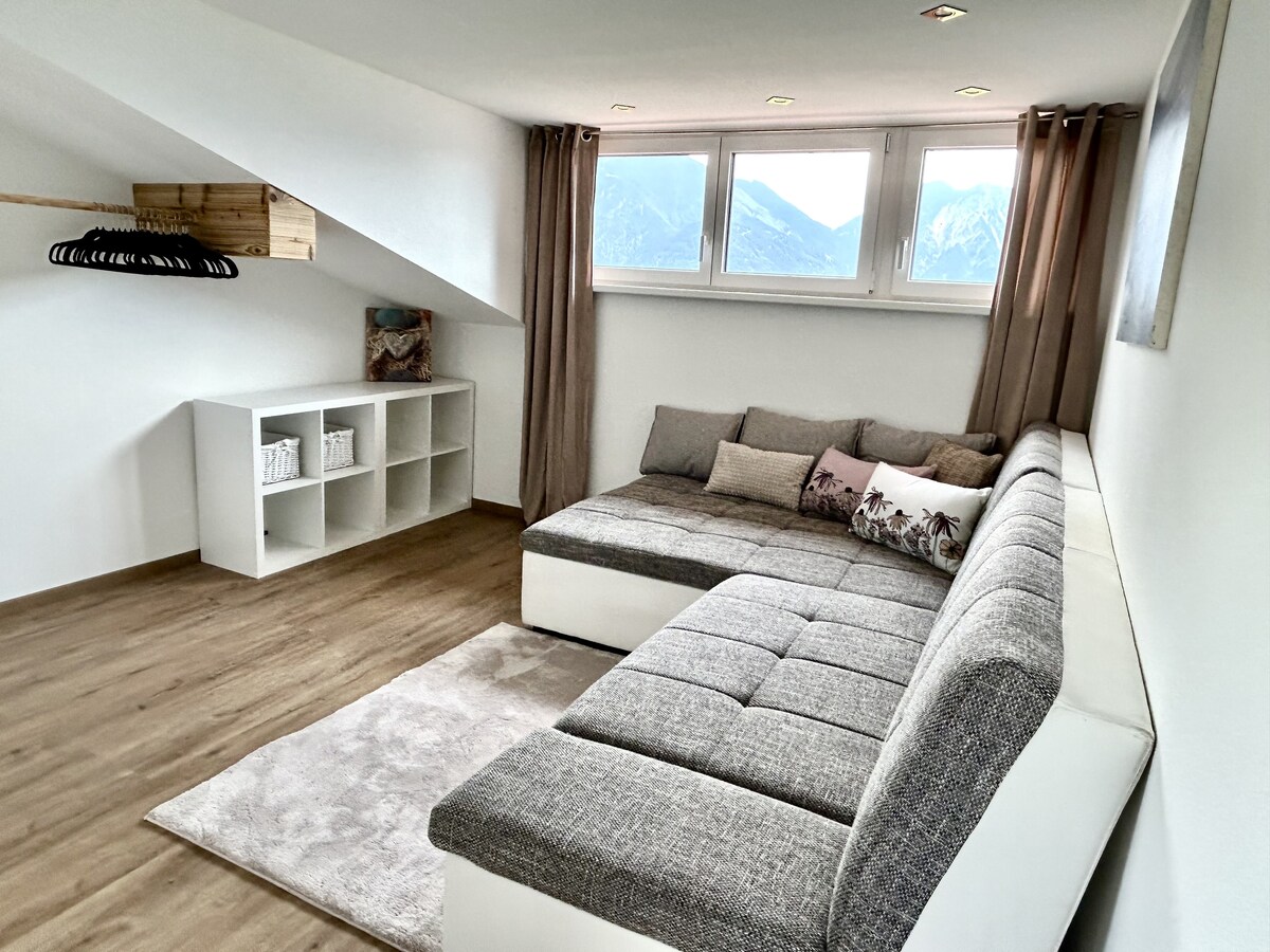 Aħna noffru appartament sħiħ (115m ²) fl-ewwel sular fil-qalba ta' Walgau. L-għażliet tal-irqad li ġejjin huma disponibbli: - Kamra tas-sodda b 'sodda doppja (180x200) - Kamra tas-sodda b 'sodda kbira għall-familja (270x200) u loft bed għat-tfal(madwar 170x90) - Kamra għall-klijenti b '2 sodod singoli jew sodda doppja (2 b' 90x200) - Salott b 'sufan li jinġibed għal 2 persuni Il-propjetà tinsab qrib ħafna ta ': - Furnara - Supermarket - Pixxina / kampijiet tat-tennis - Stazzjon tal-ferrovija