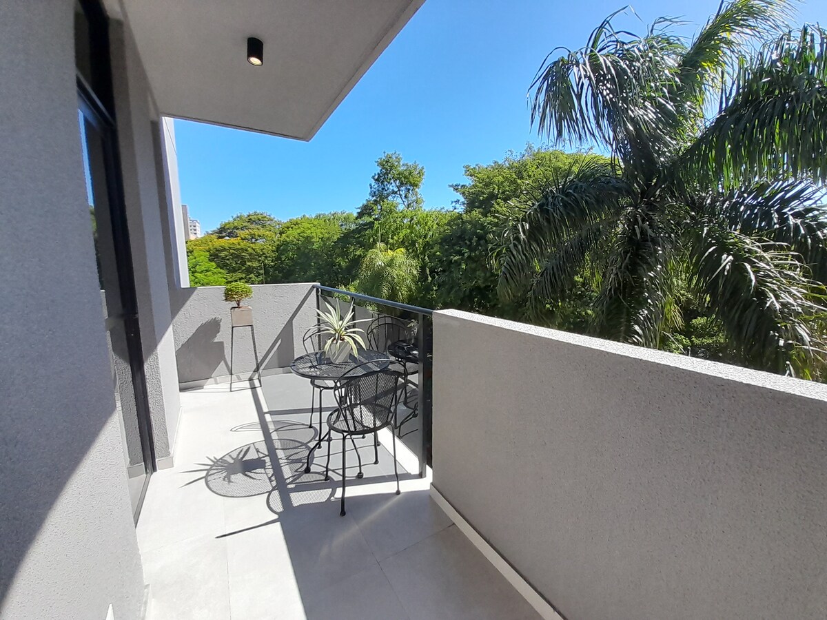 Studio Eleganti f'Rentalis Villa Morra Studio modern f'bini ġdid, ftit passi 'l bogħod minn Villa Morra u Mariscal López Shopping, Food Park, ħwienet tal-merċa, l-aqwa bars u ristoranti Ideali għall-koppji jew għall-vjaġġaturi għax-xogħol. Jinkludi AC, magna tal-ħasil/magna tat-tnixxif (rari!), microwave, filtru tal-ilma sħun/kiesaħ, magna tal-kafè, blender, Wi-Fi veloċi, smart TV, kejbil, skrivanija, u gallarija spazjuża Aċċess għall-bejt, il-pixxina u l-gym. Checkin kmieni u checkout tard disponibbli għal $25 USD Il-klijenti kollha għandhom ikunu rreġistrati ma' Airbnb