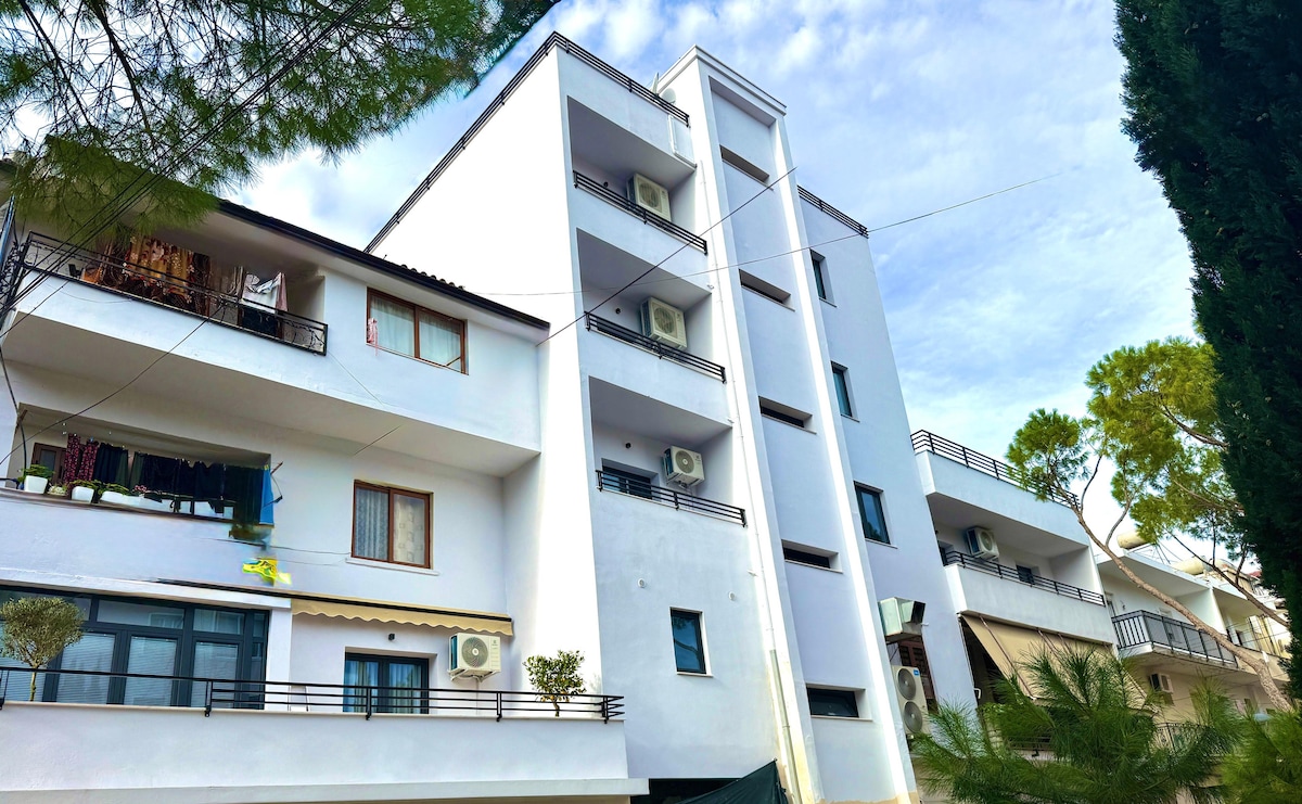 A spacious apartment with two well equipped rooms , located in the most prefered zone , of the city , in "Shetitorja e Palmave" , 20 m near the bus station and 500 m near the city center . The apartment is in the 10-th floor of a new building , and ows almost everything , a guest that visits Albania , needs .