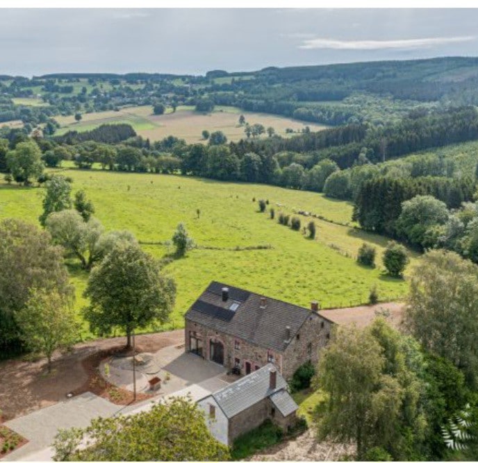 Our 250sqm family house located on the top of the Ourthe Valley has been carefully designed in the true New England spirit with a master open fire place offering you warmth, cosy and romantic moments for a memorable stay. The house is facing 100% South and benefits 360° open views, guests will enjoy stunning scenery with very long sunny days while children will love the great yard & its playground.