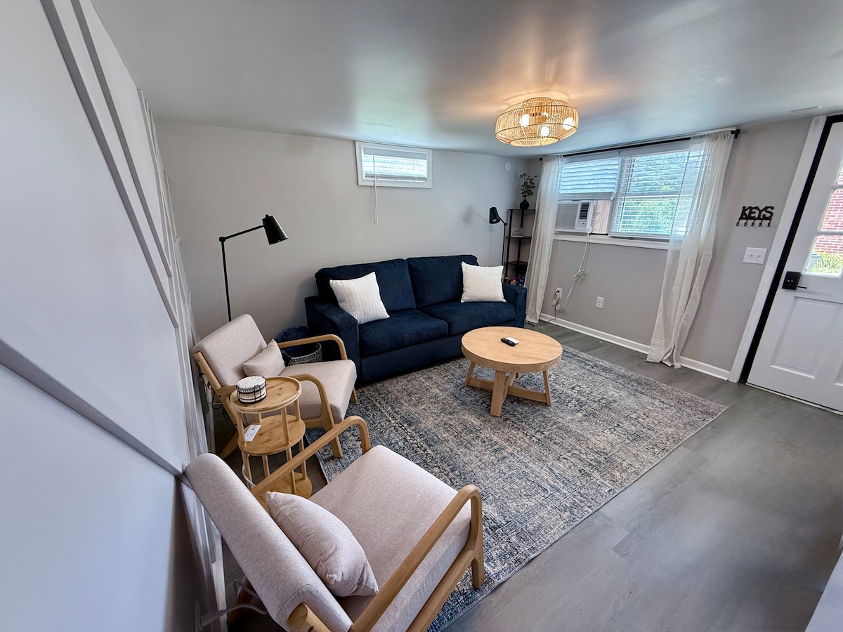 Appartament b' kamra tas-sodda/ terrazzin wieħed. L-appartament għandu kċina u terrazzin sħaħ. Hemm spazju privat għall-parkeġġ (kamra għal żewġ karozzi) u daħla privata. Il-kamra tas-sodda għandha sodda mimlija. Hemm ukoll saqqu tal-arja sħiħ għal iktar klijenti. Il-kamra tal-banju mhix fil-kamra tas-sodda. Aħna ninsabu madwar 6 minuti 'l bogħod mill-Università ta' Liberty, 8 minuti' l bogħod mill-ajruport, 15-il minuta' l bogħod mill-Kulleġġ ta' Lynchburg u 20 minuta' l bogħod mill-isptarijiet. L-iskontijiet jingħataw għal żjarat ta' sebat ijiem jew iktar. It-televixin huwa Roku.
