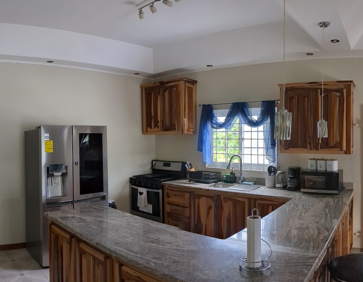 L-Oażi ta 'St Thomas hija dar ta' 3 kmamar tas-sodda li għadha kif ġiet rinnovata, 2 kmamar tal-banju fl-ewwel sular, bil-kumditajiet eleganti u moderni kollha li tixtieq u tħobb. Dan huwa l-post perfett għall-mistrieħ u r-rilassament hekk kif taħbi bi sfond tal-Muntanji Blu lush u veduti ta 'Prospect Beach dritt mit-tieqa tal-kamra tas-sodda tiegħek. WiFi, arja kkundizzjonata, TV, kafè, te, xorb huma disponibbli, u servizzi oħra disponibbli fuq talba