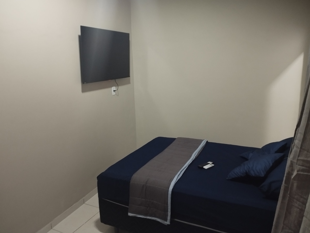 Acomodação confortável para até 4 pessoas, prática e muito bem localizada Você estará a poucos minutos do centro, aeroporto e cercado por padarias, restaurantes, farmácias, sorveterias e muito mais O ambiente é super equipado para te receber com conforto: 🛏️ Cama aconchegante 📶 Wi-Fi 🚗 Vaga para estacionamento ❄️ Ar-condicionado ☕ Cozinha com utensílios 🧺 Toalhas e roupa de cama limpas 🧼 Ferro de passar disponível 📺 Televisão disponível Tudo pensado para que você se sinta em casa