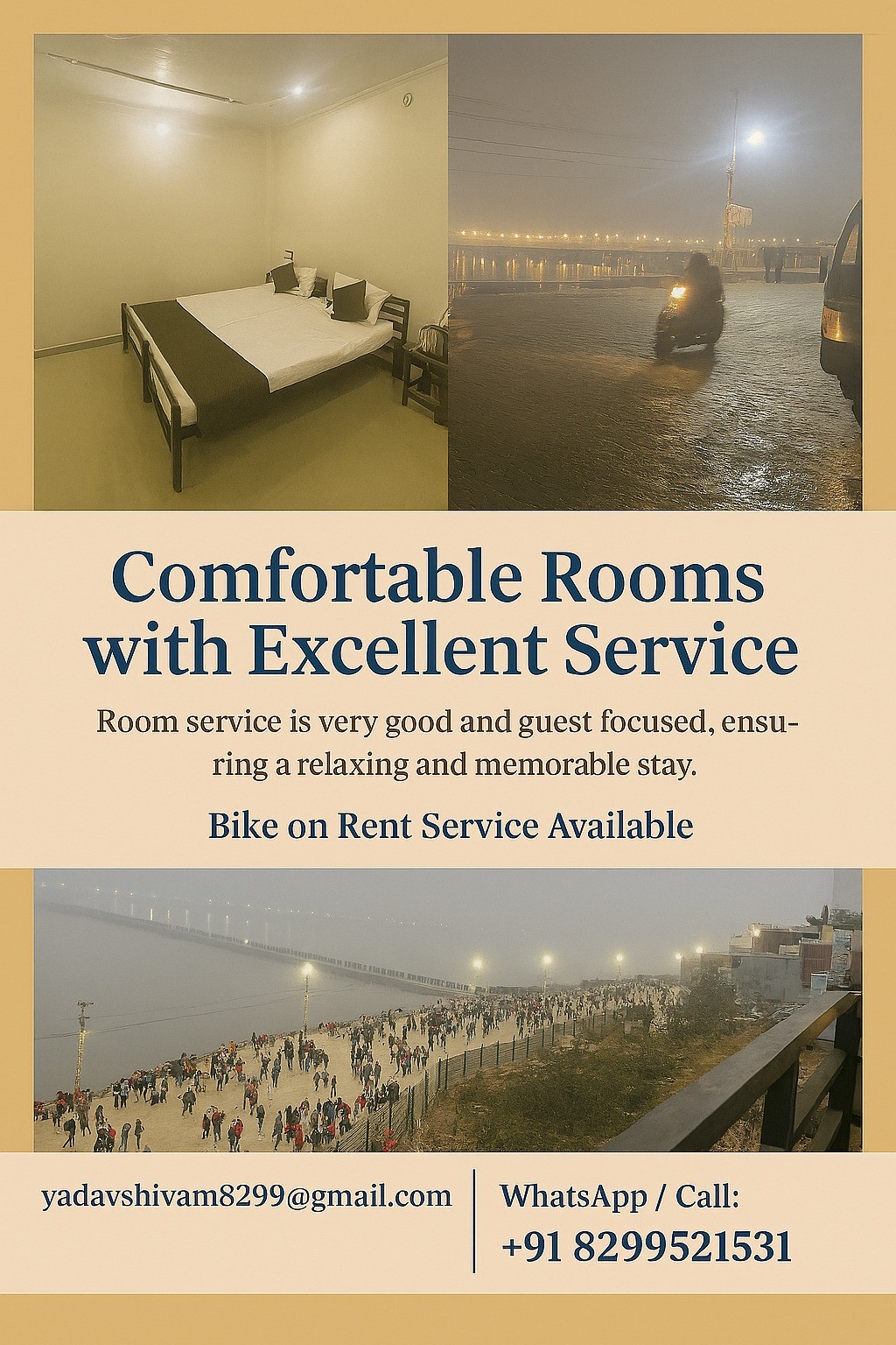 Gawdi żjara komda f'din il-kamra tal-lukanda kennija, ftit kilometri biss 'il bogħod mill-famużi Mahakal Jyotirlinga u l-Istazzjon tal-Ferrovija ta' Ujjain, li joffru aċċess faċli għall-attrazzjonijiet lokali. Il-kamra għandha sodda doppja, kamra tal-ħasil privata u l-kumditajiet essenzjali kollha għal esperjenza rilassanti. Tinsab biss 2 km 'il bogħod mill-istand tax-xarabank, u bis-servizzi tat-taxi disponibbli għall-Ajruport ta' Indore, il-konvenjenza tiegħek hija l-prijorità tagħna. Ideali kemm għall-pellegrini kif ukoll għall-vjaġġaturi li qed ifittxu l-kumdità u l-aċċessibbiltà. MA JISTAX JINTUŻA DOKUMENT TAL-INDENTITÀ LOKALI TA' UJJAIN