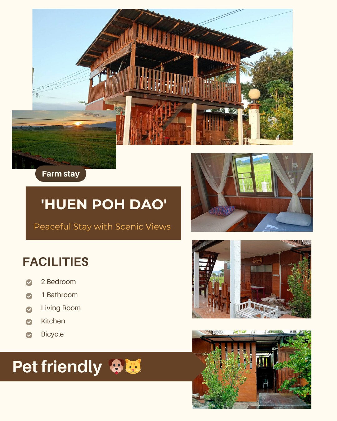 ฟาร์มสเตย์เล็กๆที่อยู่ท่ามกลางธรรมชาติ ทุ่งนา และภูเขา ใช้ชีวิตเรียบง่าย ตามวิถีชนบท ธรรมดา แต่พิเศษด้วยวิวทิวทัศน์ทุ่งนาที่สามารถมองได้โดยรอบ 360 องศา ทิวทัศน์ต่างๆจะเปลี่ยนแปลงไปตามฤดูกาล เมื่อตื่นเช้าขึ้นมาคุณจะได้สัมผัสกับอากาศที่สดชื่น ได้มองเห็นท้องฟ้า ก้อนเมฆสีขาวที่ลอยแทรกขึ้นมา กับทิวเขา ที่พักของเราบรรยากาศเงียบสงบ เป็นส่วนตัว เหมาะสำหรับการมาพักกาย พักใจ ชาร์จพลังงานชีวิตให้กับตัวเอง ที่นี่ไม่ใช่โรงแรม ไม่มีสิ่งอำนวยความสะดวกที่ครบครัน แต่เมื่อคุณมาพัก คุณจะรับการต้อนรับที่แสนอบอุ่น