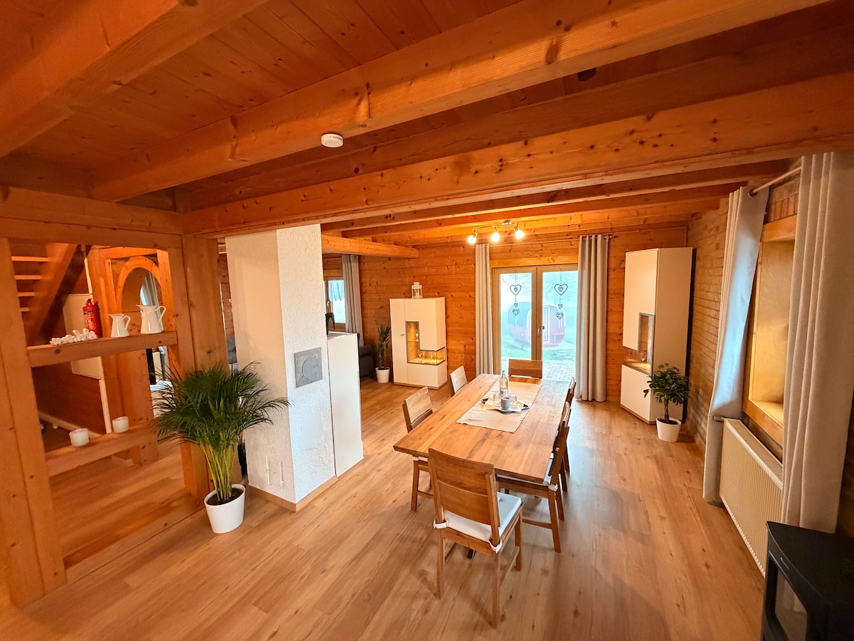 Sie möchten die Natur genießen und entspannen? Willkommen im Vogelsberg Mittelgebirge. Unmittelbar am Wiesenrand gelegen bietet sich ein direkter Zugang in die Natur und einen unbeschreiblich schöner Fernblick, der so manchen Sonnenuntergang zu einem unvergesslichen Erlebnis macht. Unser 2025 kernsaniertes Ferienhaus ist exklusiv ausgestattet und bietet mit der Panoramasauna und holzbefeuertem Hot Tub zu jeder Jahreszeit ein Erlebnis der Extraklasse.