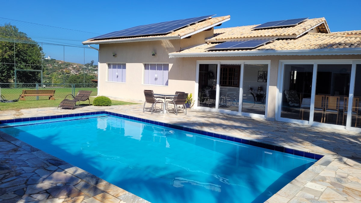 Chácara b'pixxina quddiem id-diga! Għandha forn tal-pizza, żona tal-fire pit, bitħa għat-tfal, żona tal-hammock, kamra tal-logħob u kiosk kbir għal avvenimenti bi bbq kbir. Il-listing jiflaħ sa 16-il persuna, għal mill-inqas żewġt iljieli, u jekk ikun hemm iktar minn 16-il persuna, il-prezz se jiżdied. Aħna ma nipprovdux bjankerija tas-sodda, imħaded jew xugamani. Insta: @casetroeventos Mapep: Casa Retrô