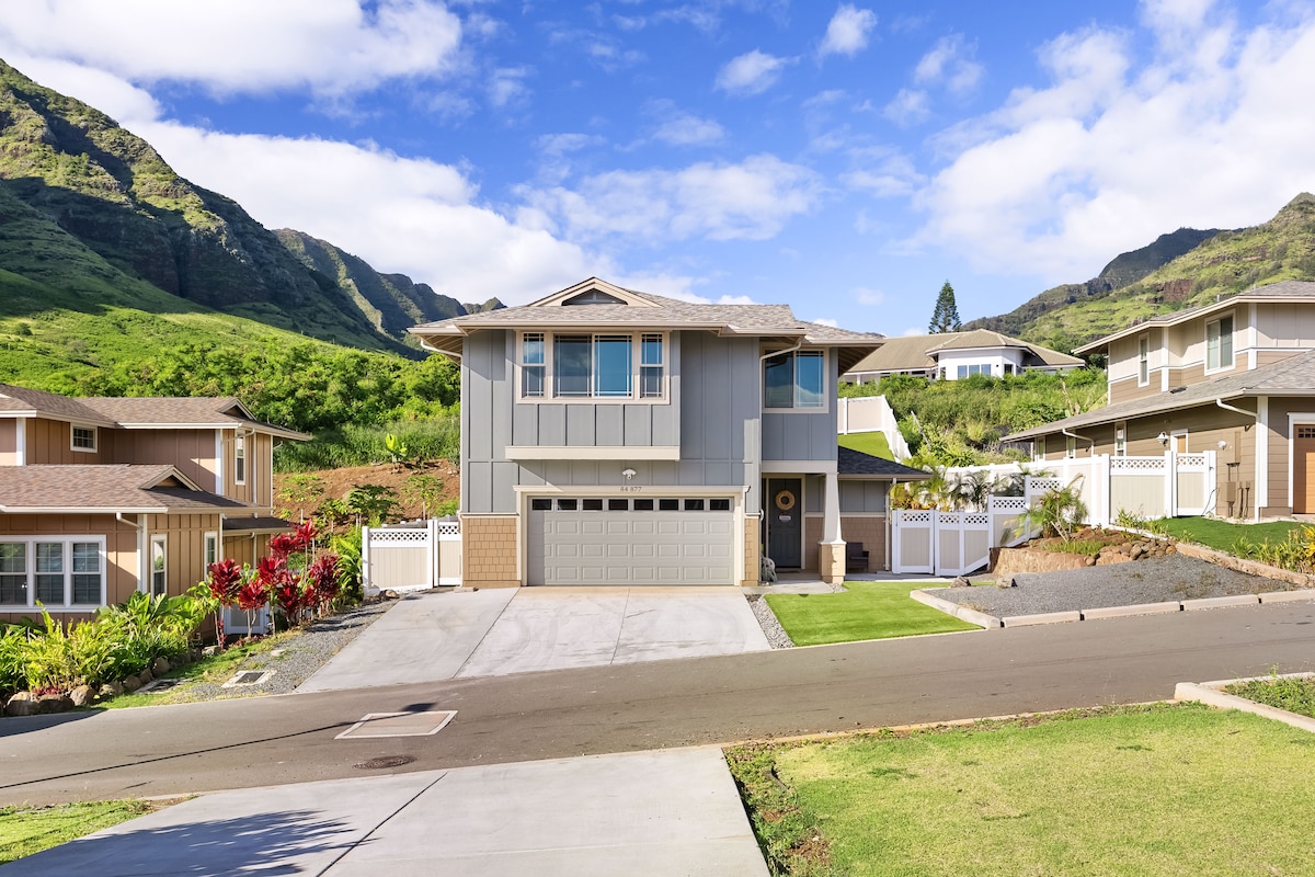 Dar b' 4 sodod/2,5 kmamar tal-banju mfassla b' togħma tajba f' komunità magħluqa (mibnija fl-2022), li tinsab fil-Wied sabiħ ta' Makaha. Bitħa privata fuq wara b' veduta mill-isbaħ tal-muntanji ta' Wai' ane u veduta tal-oċean peek-a-boo. Gawdi ħin ta 'kwalità mal-familja u l-ħbieb tiegħek f' din id-dar eleganti u komda. Esperjenza t-togħma vera tal-ġenna fuq in-naħa tal-punent ta 'Oahu,' il bogħod mill-għaġla u l-għaġla tal-belt. Il-bajjiet bla tmiem tul il-kosta, il-ħajja tal-foki mill-isbaħ u l-muntanji mill-isbaħ se jagħmlu l-vaganza tiegħek mill-isbaħ!