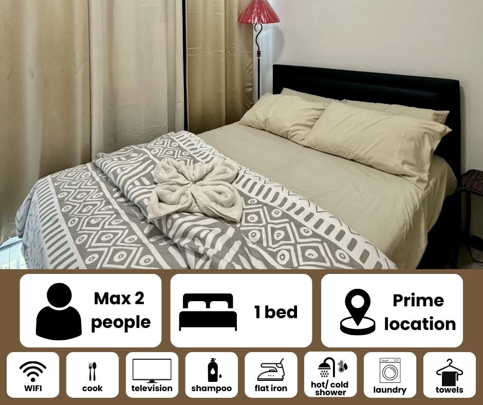 Located in the center of Makati red-light district, this one bedroom apartment is renovated & fitted out to suit an endless summer vacation vibe There are 2 flatscreen TVs, split type AC in the bedroom, comfy queen bed, electric reclining love seat, new karaoke speaker, kitchen plus a spacious balcony for smokers 🚬 Registered guests are allowed to have visitors but room provisions can accommodate 2 to 5 pax staying overnight. If you prefer utter silence, this might NOT be the place for you‼️