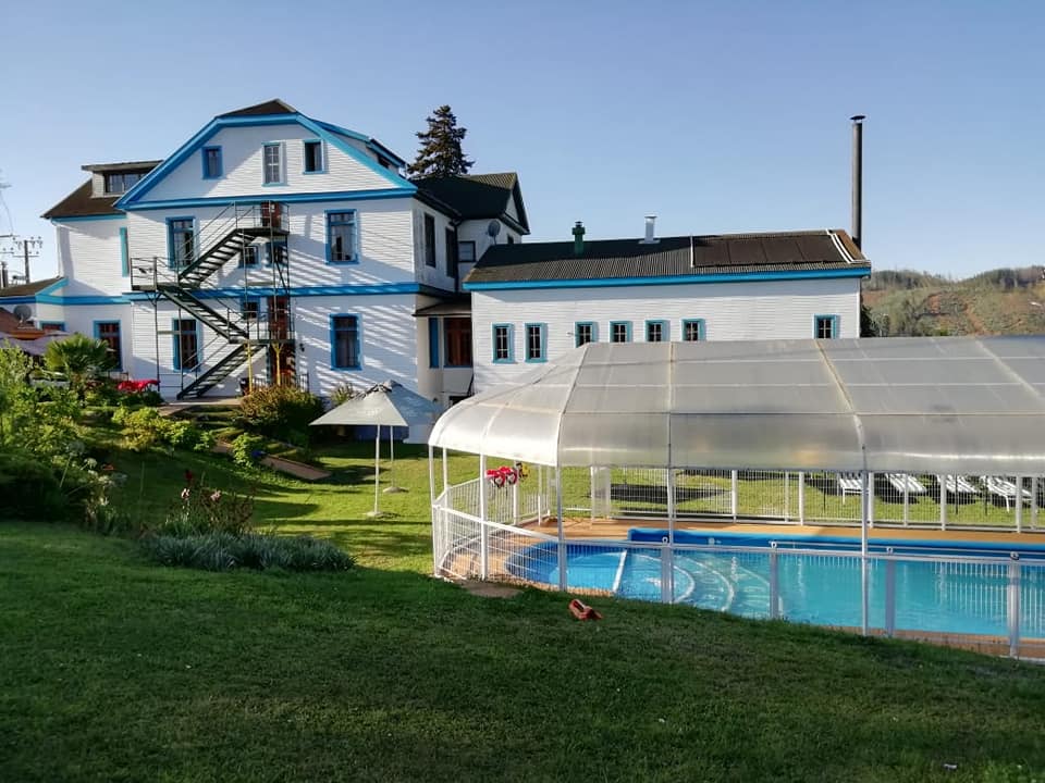 Hotel Club Social Angol – Tradición, Historia y Confort: Hotel patrimonial de 1940 con habitaciones remodeladas, aire acondicionado, Wi-Fi, TV y baño privado. Sala de arte con obras de Oscar Anguita Costa y Pacheco Altamirano. Restaurante de autor, bar exclusivo con chimenea, sala de juegos, gimnasio, sauna, piscina y estacionamiento gratuito. Recepción 24/7 en un entorno único que combina historia, confort y cultura en el corazón de Angol.