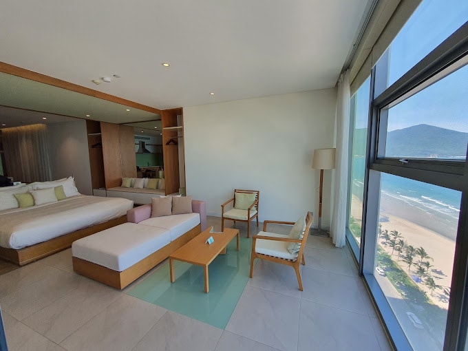 Esperjenza l-veduti mill-isbaħ tal-oċean fl-appartament modern tagħna b' 2 ikmamar tas-sodda. Hemm gallariji kemm fis-salott kif ukoll fil-kamra tas-sodda. Il-kċina mgħammra b' kollox tħallik issajjar daqslikieku kont id-dar u għandna wkoll magna tal-ħasil u dryer. My Khe Beach tinsab biss 50 metru 'l bogħod mill-appartament u l-klijenti jistgħu jużaw il-pixxina infinity fuq it-33 sular tal-bini b' xi spiża żejda (100.000vnd/person) ukoll Bħala gym u sawna (200.000/person)