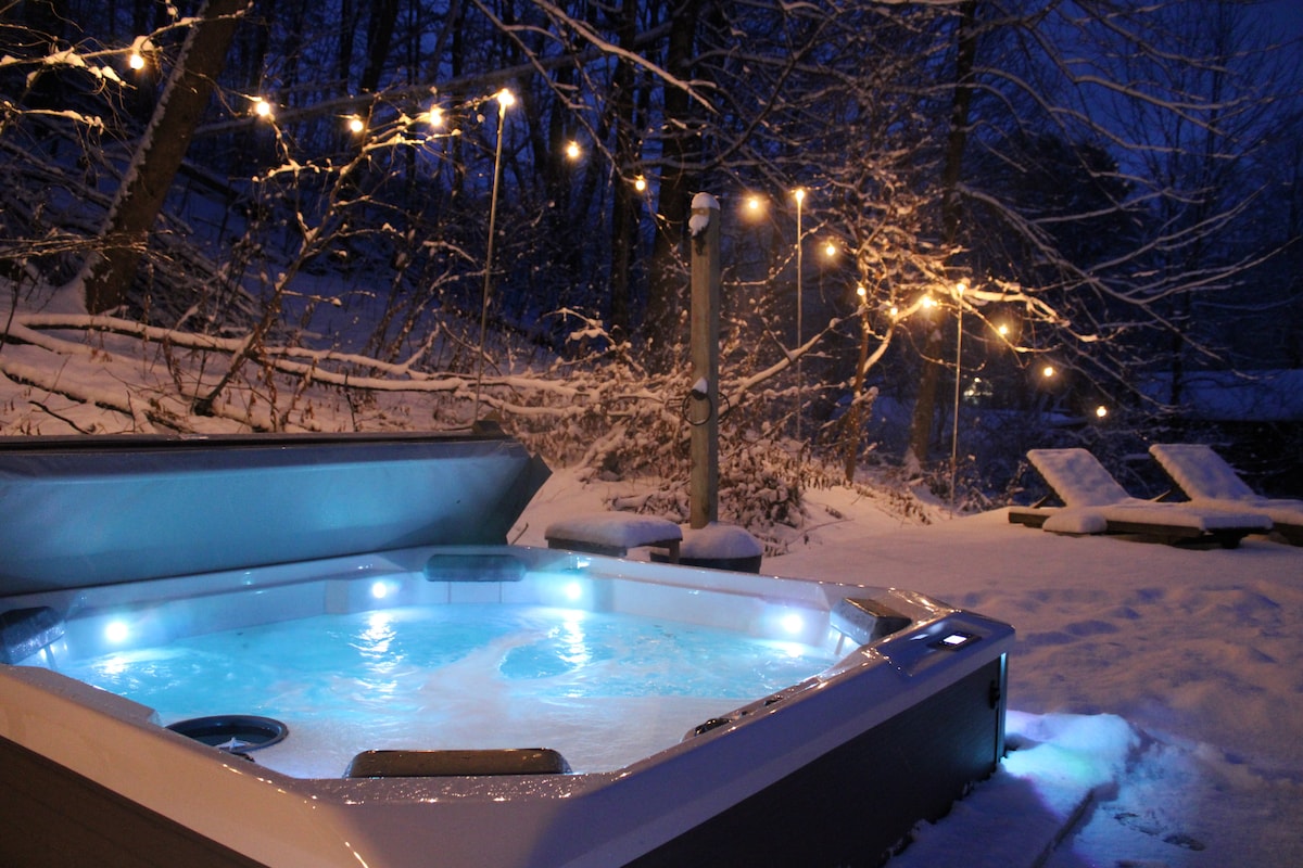 Ħarba fil-Muntanji ta' Stratton: Hot Tub, Firepit u Għadira