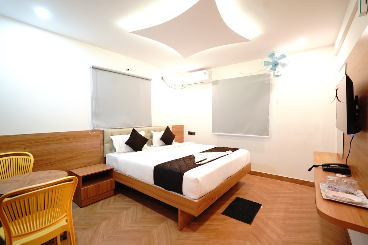 Gawdi l-kumdità u r-raffinatezza tal-Kamra Deluxe tagħna, imfassla biex toffri żjara mill-aqwa bi spazju ikbar, dekor eleganti u kumditajiet aħjar. Ideali għall-koppji, il-familji u l-vjaġġaturi tax-xogħol, il-Kamra Deluxe tgħaqqad il-kumdità moderna mal-ospitalità sabiħa ta' Mysuru. Irrilassa wara jum twil ta' żjarat jew laqgħat f'ambjent serenu u mgħammar sew li jiżgura kemm il-kumdità kif ukoll l-istil.