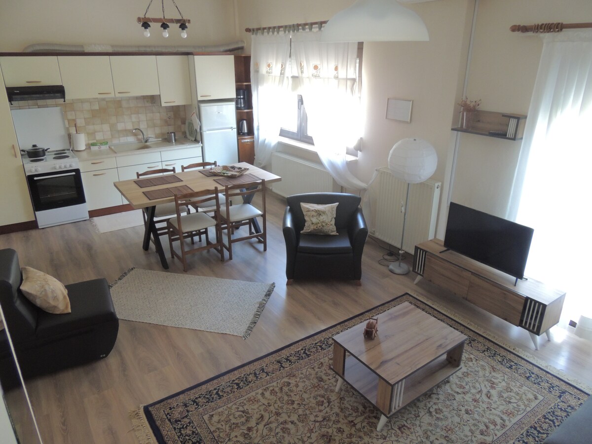 Dan huwa appartament ta' 47 m² li jinsab fis-sular t'isfel, 750 metru 'l bogħod mill-pjazza ċentrali ta' Orestiada. Għandha: 1 salott b'kċina, 1 kamra tal-banju b'kamra tad-doċċa, 1 kamra tas-sodda b'sodda doppja, sufan sodda fis-salott, sodda żgħira żejda għat-trabi, 1 maħżen żgħir bil-magna tal-ħasil, TV, wifi, tisħin awtonomu bil-petrol fix-xitwa u aċċess għall-ġnien. Kapaċità ta' 2 persuni. Il-klijenti jgawdu minn żjara trankwilla ħafna u parkeġġ komdu (Triq). Is-sidja tgħix fl-istess bini, fl-ewwel sular