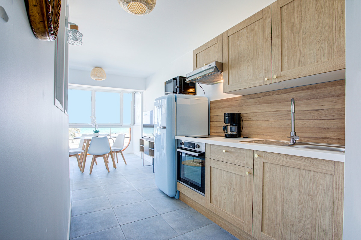akkomodazzjoni rinnovata li tinsab fil-5 sular(38m2 +10m2 terrazzin)- 2 liftijiet- parkeġġ privat fuq il-post (għoli 1m90maxi)- il-kumdità kollha - Veduta panoramika tal-baħar mit-terrazzin mgħotti - Ebda tara - Aċċess dirett għall-bajja - 1 sodda doppja tas-sodda 140 - sodda tal-irqad 140 - arja kkundizzjonata - kċina kkundizzjonata ġdida 4 fireplace tal-induzzjoni, forn tas-sħana li jduranti - microwave - dishwasher, magna tal-ħasil - Smart TV - Smart - Bjankerija, xugamani pprovduti, fibra wifi- Wi-Fi-