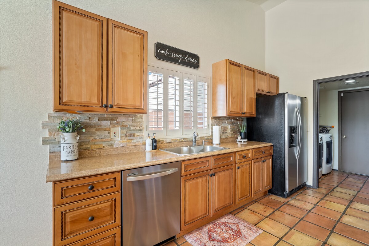 Perla moħbija ġewwa Tucson! Id-dar hija Dar Stil ta' Santa Fe stil klassiku ta' adobe. Gawdi l-kumditajiet kollha tad-dar, irrilassa fil-bitħa sabiħa, maqtugħa għaliha, magħluqa kompletament fil-bitħa ta 'wara b' banju sħun privat u pixxina. Iż-żona tal-ikel tista' toqgħod sa 8, il-kċina mgħammra bl-affarijiet essenzjali kollha. Hemm spazju żgħir u funzjonali għall-uffiċċju bi printer u karta u kamra għall-ħasil tal-ħwejjeġ. Hemm 3 ikmamar tas-sodda komdi b' smart TVs, internet veloċi, bjankerija tas-sodda u fannijiet tas-saqaf ta' kwalità għolja.
