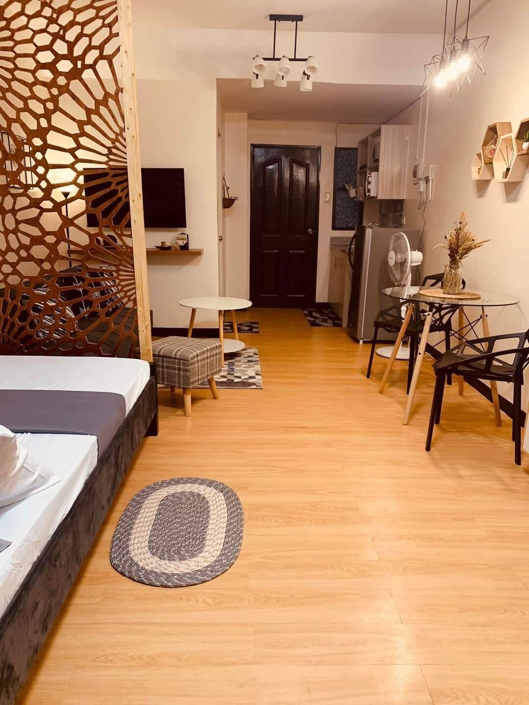 Studio komdu u komdu li jinsab fil-qalba ta' SMDC Cheer Residences ġewwa Marilao, Bulacan! L-unità tagħna mgħammra b' kollox u mgħammra b' dak kollu li teħtieġ għal żjara komda u pjaċevoli, inkluż sodda komda ta' daqs queen, sufan sodda, TV b' skrin ċatt, mejda tal-ikel, kċina żgħira bi friġġ, microwave, kitla tal-elettriku u oġġetti tal-kċina bażiċi, kamra tal-banju privata b' doċċa sħuna u kiesħa, pixxina, skrivanija tas-sigurtà u tal-akkoljenza 24 siegħa kuljum.