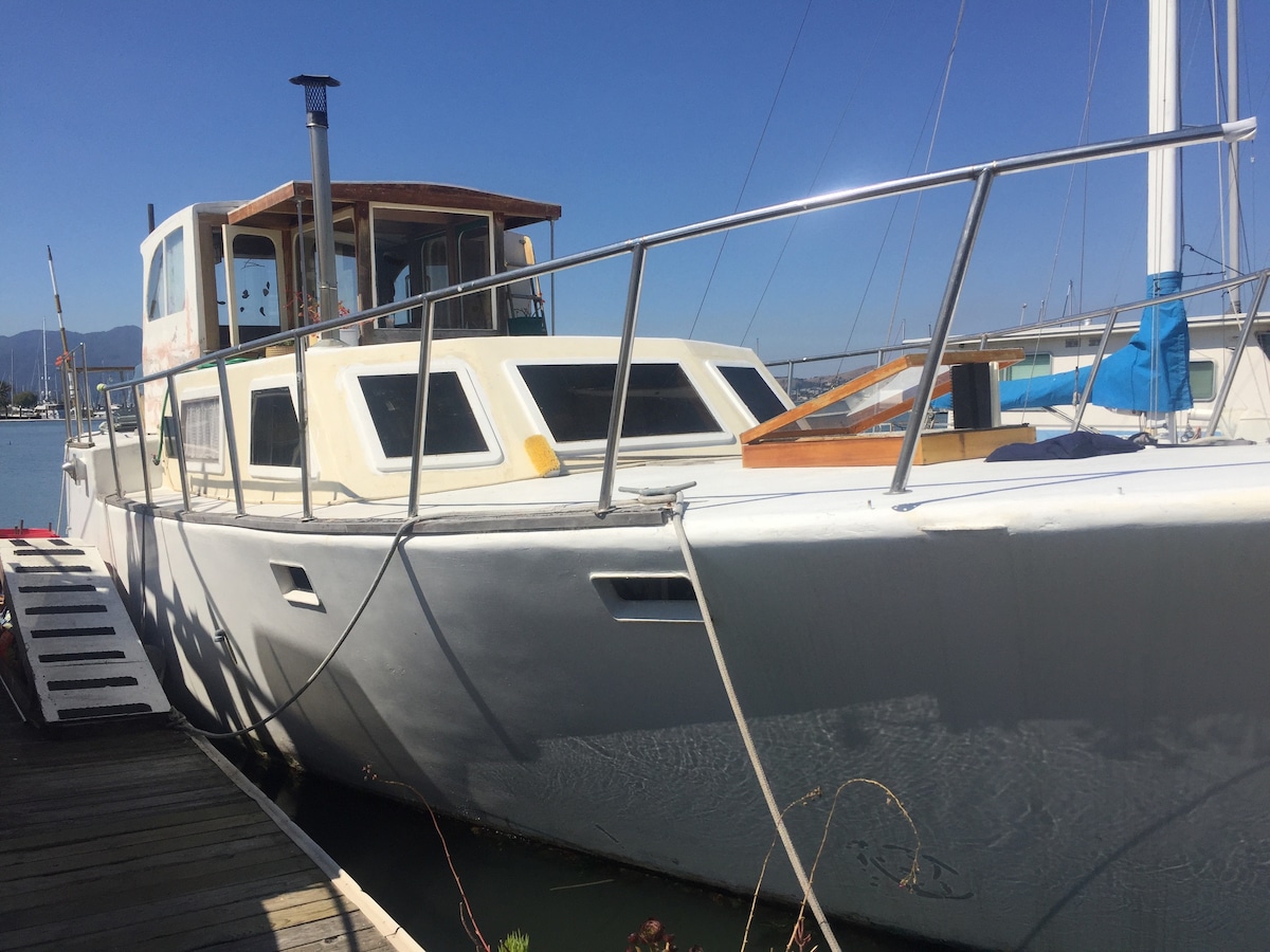 Dar maġika faċċata tal-ilma fuq il-bajja f' Point Richmond mill-isbaħ, mgħammra b' arti tribali u antikitajiet Asjatiċi! Veduti kbar tal-bajja mill-gverta l-kbira tiegħek stess fuq l-ilma, miż-żoni sbieħ tal-għajxien u tal-ikel, mill-ispazju ewlieni tal-kamra tas-sodda tiegħek, mill-kċina moderna tiegħek - anke mid-doċċa tiegħek! Isma' l-mewġ! Gawdi mix-xemx mill-isbaħ, u ara d-dwal ta' filgħaxija minn San Francisco u l-Pont Golden Gate! Lanċa ġdida diretta lejn SF! *JEKK JOGĦĠBOK IKKUNTATTJANA B' "MISTOQSIJA" QABEL TITLOB ID-DATI! GRAZZI!*