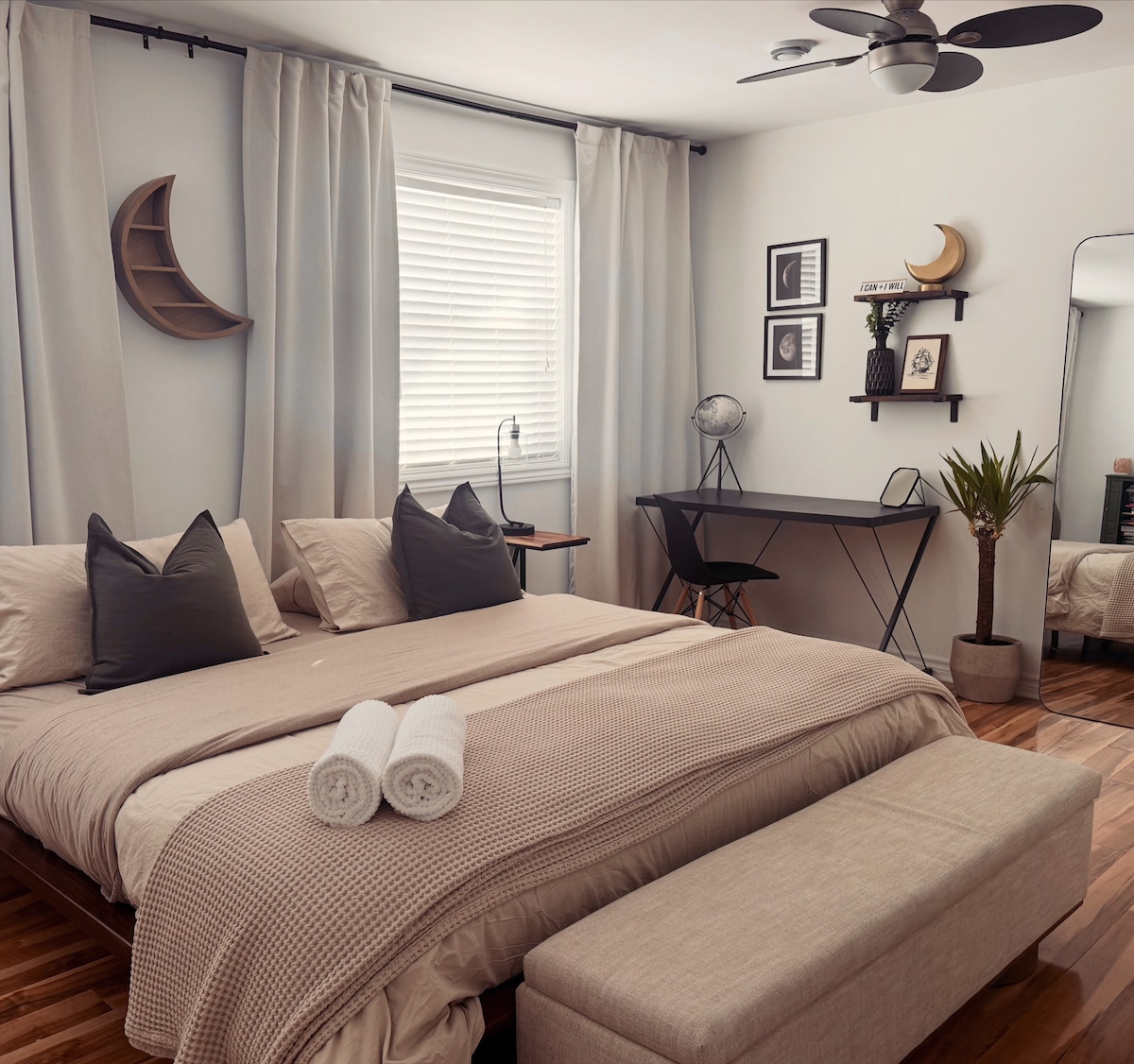 Din Airbnb li għadha kif inbniet u tinsab fiċ-ċentru li tinsab fi ftit minuti 'l bogħod mill-oċean. Mgħammra bl-amneties kollha tad-dar għal żjara sabiħa, 2 kmamar tas-sodda inklużi u għandhom ħafna kmamar tal-banju inklużi 2 kmamar tal-banju b' doċċa kull waħda. Hemm TV f' kull unità b' sufan biex tirrilassa. Cooker u friġġ biex issajjar ikla sabiħa. Il-Mogħdija tal-Kabot tinsab madwar siegħa 'l bogħod. Il-lanċa ta' Newfoundland tinsab 15-il minuta 'l bogħod. Unità tajba għal 2 persuni jew 4. Hemm bieb ħdejn xulxin fin-nofs li jissepara l-unitajiet.