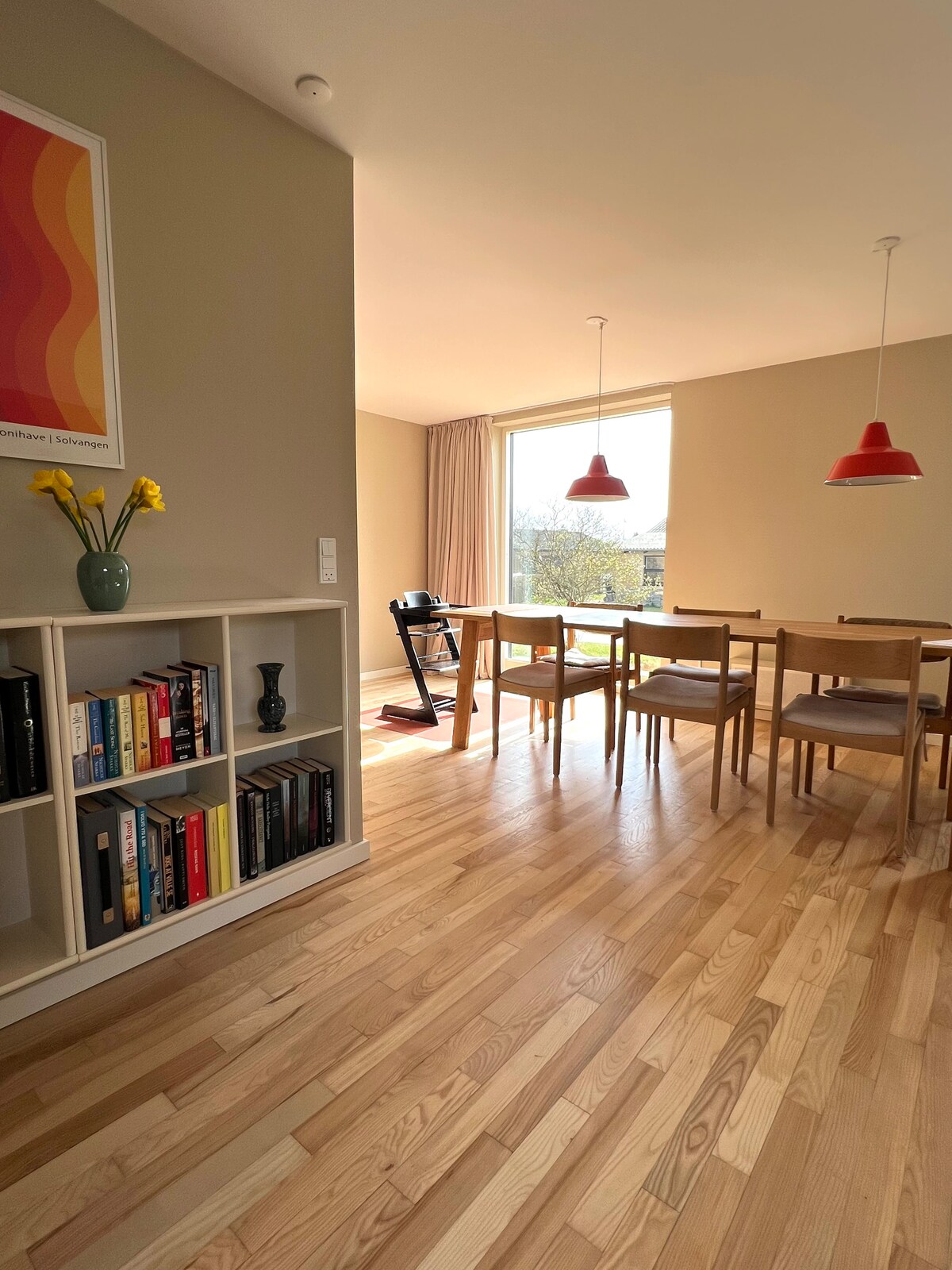 The guest suite is separated from the rest of the house. We live next door - just ring the bell if we can help you. The guest suite is exclusively being used for Airbnb. The large room has one large bed with room for 2 (3) people, kitchenette with basic spices and kitchen equipment, one cooktop, fridge, microwave oven, as well as a dining table and couch. The smaller room has two single beds. There's free wifi (300Mb) in both rooms. Also free Netflix There's a large bathroom with toilet, changing table, baby tub, shower, and underfloor heating. We supply bed linen and towels There are two private terraces. One facing west and one with a beautiful view facing east. Here you can enjoy your morning coffee or your evening dinner. You can cook yourself in the kitchenette or order pizzas from our local pizza bakery (300 meters away). There's only 400 meters to several grocery stores. 2 playgrounds within 200 meters