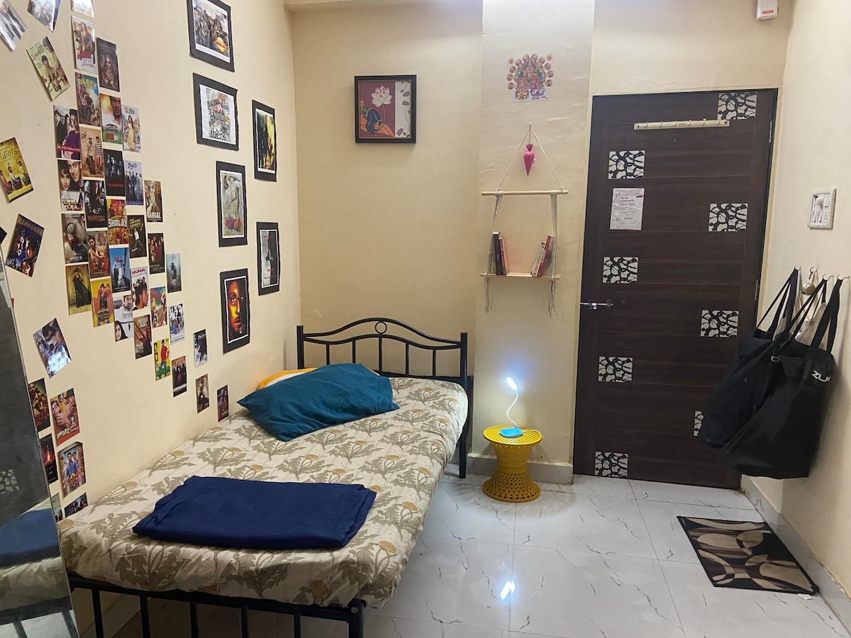 Merħba fil-baċellerat komdu tagħna! Kemm timxi 5 minuti sal-merċa u 15-il minuta sa Malad Metro/Railway; Infinity Mall tinsab fil-qrib. Gawdi l-WiFi Jio, sodda komda, AC u skrivanija. It-terrazzin ċatt tagħna joffri aċċess 24 siegħa kuljum għal terrazzin privat għall-kafè/chai u x-xogħol. Il-kamra tal-banju personali tiegħek. Klijenti waħedhom biss; tipjip permess fuq terrazzin. L-ebda parties jew klijenti matul il-lejl. Filwaqt li m' hemmx kċina, jistgħu jiġu rranġati ikliet magħmula d-dar. Apps tal-konsenja bħal Swiggy, Zomato, Blinkit iservu l-post tagħna f' minuti.