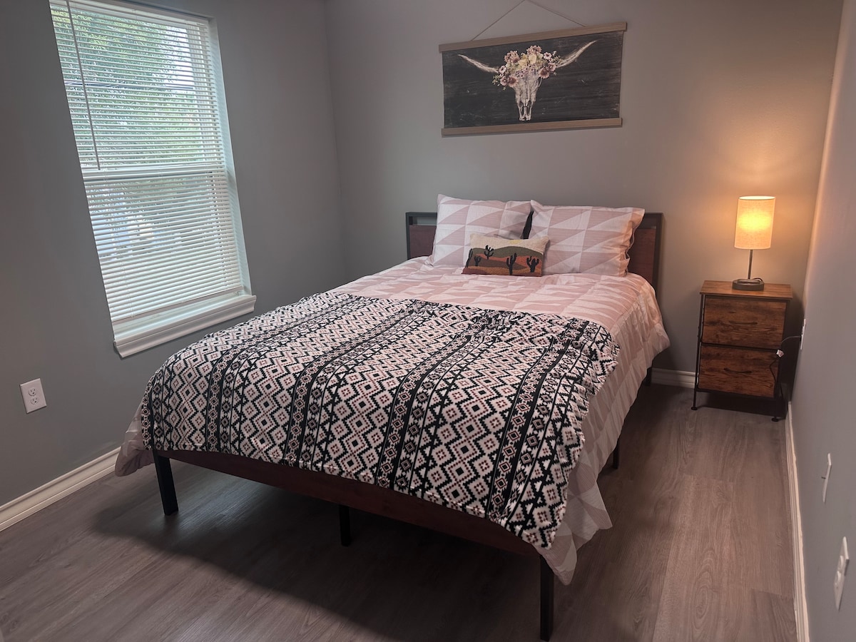 Designed for comfort and accessibility, this modern 2BR/1BA apartment is fully remodeled (2025) and ideal for professionals on extended stays. Located in a private gated complex with dedicated parking and a wheelchair-accessible ramp. Enjoy fast Wi-Fi, a quiet workspace, and modern furnishings—just minutes from SpaceX, LNG, and the U.S.–Mexico border. Walk to cafés, restaurants, and downtown businesses.