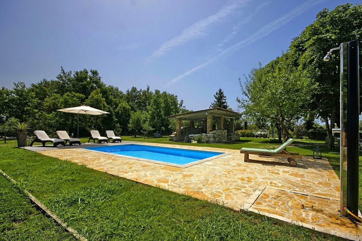 Villa iżgħar Istrijana, b 'pixxina privata msaħħna f' raħal pittoresk Istrijan, 5 minuti biss sewqan' il bogħod mill-baħar. Privatezza assoluta, pixxina privata, parkeġġ privat għal 3 karozzi. Id-dar għandha 3 ikmamar tas-sodda u 3 ikmamar tal-banju u tista 'takkomoda sa 8 persuni, komda ħafna hija għal 6 persuni. Perfetta biex tgawdi filgħodu xemxija u lejliet romantiċi pjaċevoli ħdejn il-pixxina. Immexxi minn host b 'esperjenza!