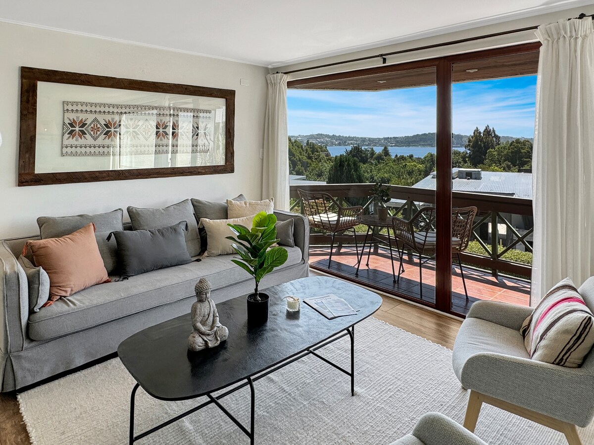 Appartament komdu f 'bini esklussiv li jinsab fuq il-kosta ta' Puerto Varas b' veduta privileġġata tal-Lag Llanquihue. Għandu terrazzin qawwi, kamra tas-sodda en-suite, kamra tal-ikel u kċina integrata. Għandu WIFI, tisħin ċentrali u jinkludi parkeġġ. Dan jinsab faċċata tal-ilma, passi 'l bogħod mill-bajja, ristoranti u kummerċ. Il-bini jinkludi: – Pixxina temperate – Ġnien fuq ġewwa – Ħasil tal-ħwejjeġ – Quincho – Concierge 24 Siegħa