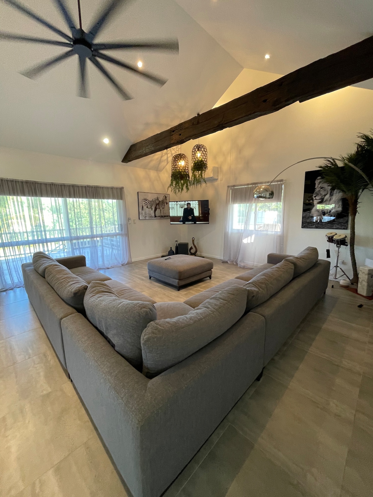 Villa moderna u spazjuża b' żewġt ikmamar tas-sodda b' arja kkundizzjonata fiż-żoni tas-salott u fil-kmamar tas-sodda. Il-kċina kbira u moderna mgħammra b' dak kollu li se jkollok bżonn biex tħejji l-ikel (ħanut lokali jinsab ħdejn il-bieb għall-provvisti), jew tista' tmur fit-triq lejn ir-Resort tal-Paċifiku u tiekol hemm, jekk tippreferi. Jew għandek Tamanu Resort għall-Kolazzjon u l-Ikel jew Avatea Cafe għall-ikla ta' nofsinhar jew għall-ikla ta' filgħaxija.