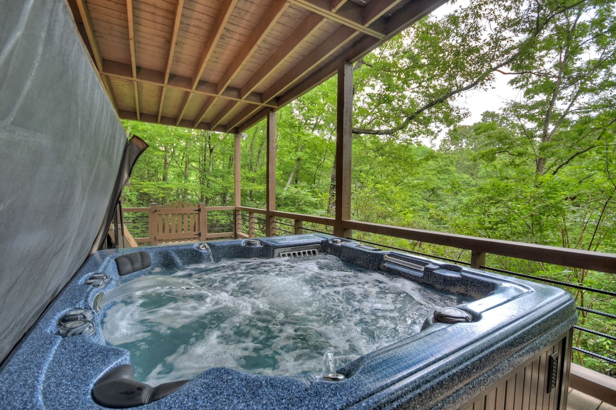 Hot Tub & Mtn Views! Creekside Mineral Bluff Cabin