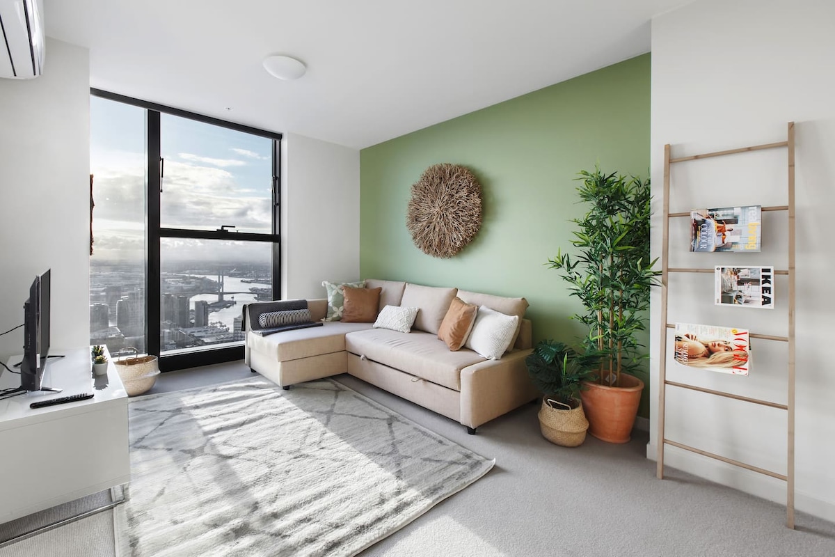 Aħrab lilek innifsek b' vaganza tajba f' dan il-post ideali qrib ix-xmara Yarra u l-kumpless Crown Entertainment b' veduti panoramiċi ta' Melbourne u l-bajja! Haven kontemporanja b' dak kollu li teħtieġ għall-kumdità tiegħek biex tħossok qisek qiegħed id-dar u tgawdi żjara bla xkiel! ★Wifi u Netflix bla limitu Apparat ★modern ★Kumditajiet tal-bjankerija u tal-banju ★Magna tal-ħasil u dryer ★Studju/Spazju tax-xogħol ★AC u tisħin ★Rigal ta' merħba Sodod b' daqs ta' queen ★komdi ★Aċċess għall-pixxina, għall-gym u għas-sawna