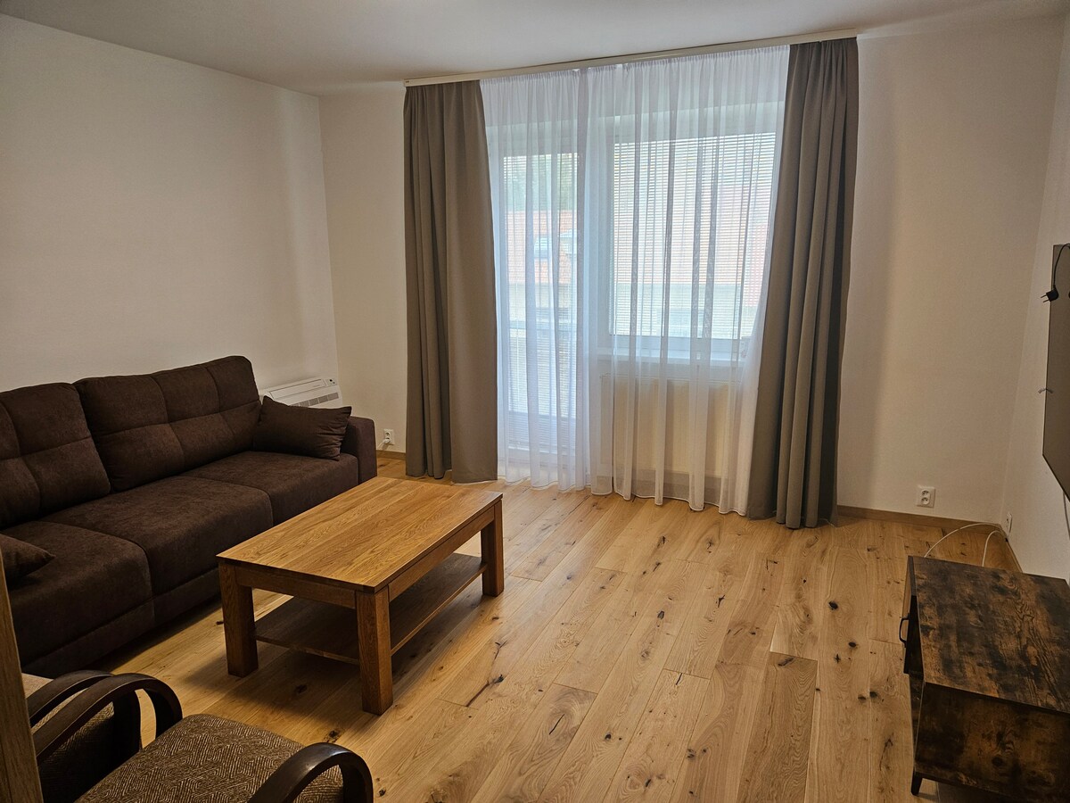Appartament ġdid rinnovat, mgħammar kompletament 1+kk b' terrazzin, li jħares lejn il-bitħa jinsab fl-ewwel sular tad-dar. Huwa aċċessibbli bit-taraġ (il-lift mhux hawn). Għalkemm id-dar tinsab fil-pjazza, l-appartament huwa kwiet u paċifiku. F 'mixja ta' 5 minuti hemm chateau Slavkov b' park sabiħ, ristoranti, ħwienet tal-għaġina, kafetteriji, ħwienet tal-inbid, ħwienet, eċċ. Hemm ukoll korsa tal-golf, pixxina u faċilitajiet sportivi oħra.