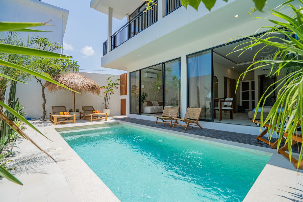 Villa privata lussuża b' kamra tas-sodda waħda li tinsab fil-qalba ta' Pererenan! Irrilassa fil-privatezza bil-pixxina tiegħek stess u bl-għamara eleganti. Aħna qed nimxu 'l bogħod lejn il-kafetteriji kollha - ma nistgħux niksbu post aħjar fis-subborg tal-moda ta' Pererenan, li huwa wkoll 5 minuti sewqan lejn il-qalba ta' Canggu u 800m lejn il-bajja. Il-villa għandha kċina mgħammra b 'mod sħiħ, tisjir tal-gass, magna tal-espresso Delonghi, TV 43”(Netflix b' xejn), arja kkundizzjonata kiesħa, banju enormi flimkien mal-pool privata tiegħek stess.
