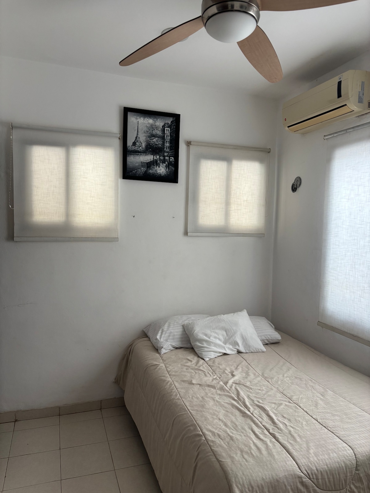 La habitación se encuentra ubicada dentro de un fraccionamiento privado que cuenta con vigilancia 24/7, parque y jardines en los que podrás realizar una caminata diaria o salir a respirar aire puro. La habitación cuenta con cama matrimonial, aire acondicionado, ventilador de techo, smart TV con cuenta de Netflix y Youtube incluidos, baño completo dentro de la habitación, hamaca, cortinas y repisas para colocar tus pertenencias. La regadera cuenta con agua caliente y fría e internet 🛜