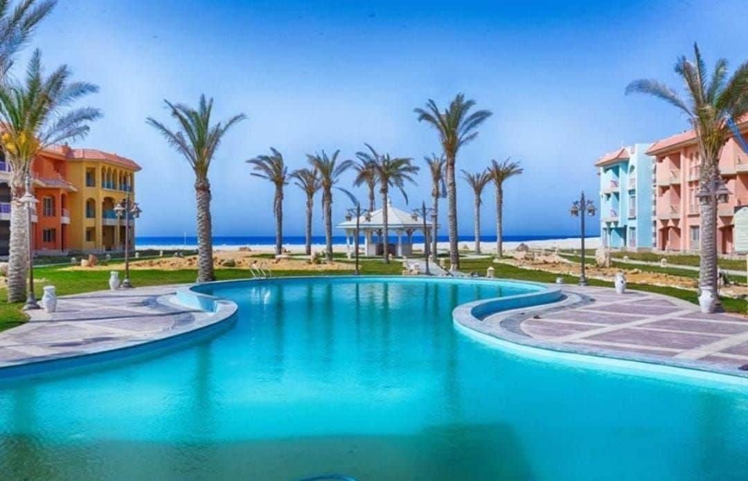 Amazing Żewġ Kmamar tas-Sodda Sea View Chalet f 'Porto Matrouh - b' Aqua Park, aċċess għall-bajja, żona għat-tfal, ġnien, pixxina fuq barra u terrazzin. L-akkomodazzjonijiet huma kompletament bl-arja kondizzjonata.