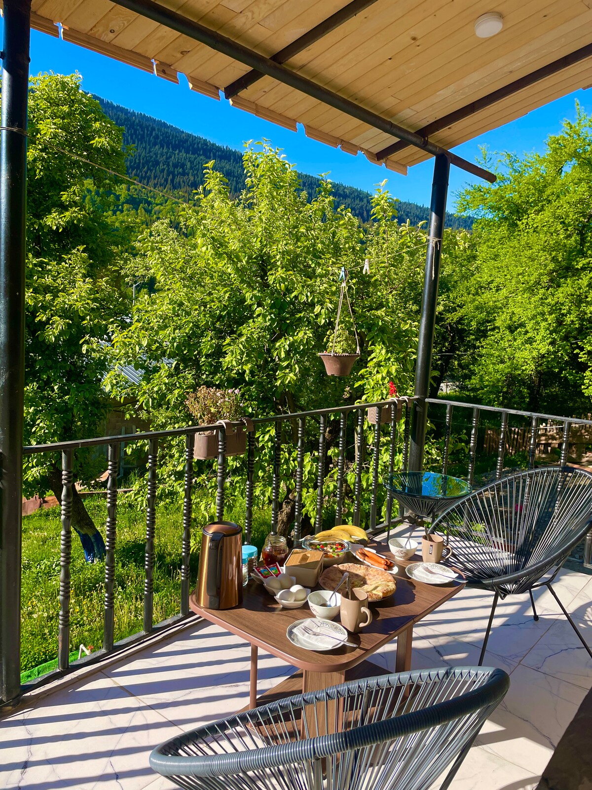 View, view, and view! Enjoy one of the most breathtaking views in all of Hatsvali, Mestia. The place is private and peaceful, yet only 50 meters from the Hatsvali ski lift. Wake up to the sounds of squirrels, maybe spot a fox, and admire the majestic twin peaks of Ushba. The area is regularly treated for insects, but as it’s surrounded by pristine forest, you may occasionally notice a fly or small bug — part of the true mountain experience.