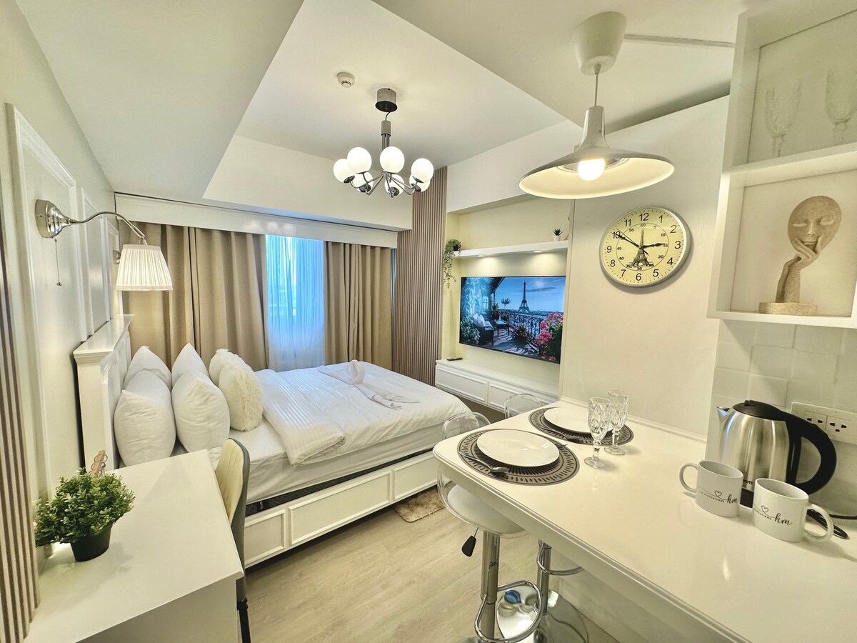 Angelic Premier Residences tinsab qrib biżżejjed ta' SM, il-belt tal-Korea, ristoranti u bars, iżda 'l bogħod biżżejjed biex ma tkunx storbjuża wisq. Il-bini għandu gym, pixxina fuq il-bejt 24 siegħa kuljum u bar sportiv b' mejda tal-biljard. Hemm parkeġġ komuni quddiem il-conddo fuq bażi ta' 1st come 1st serve + parkeġġ addizzjonali tul it-triq. Dan huwa appartament b' kamra tas-sodda waħda kompletament mgħammar b' checkin faċli, 2 x Netflix TVs, Internet Fibra Ottika ta' 200Mbps, sodda King-size 1 x, sodda waħda li tintlewa u sufan komdu!