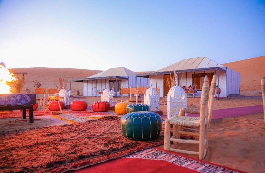 Soy Daoud, del equipo del Campamento de Lujo en el desierto de Merzouga. Nuestro campamento está ubicado en medio de las dunas doradas del Sahara, lejos del ruido y rodeado de naturaleza y tranquilidad. Ofrecemos una experiencia auténtica y confortable en el corazón del desierto, con hospitalidad bereber y un ambiente mágico bajo las estrellas.