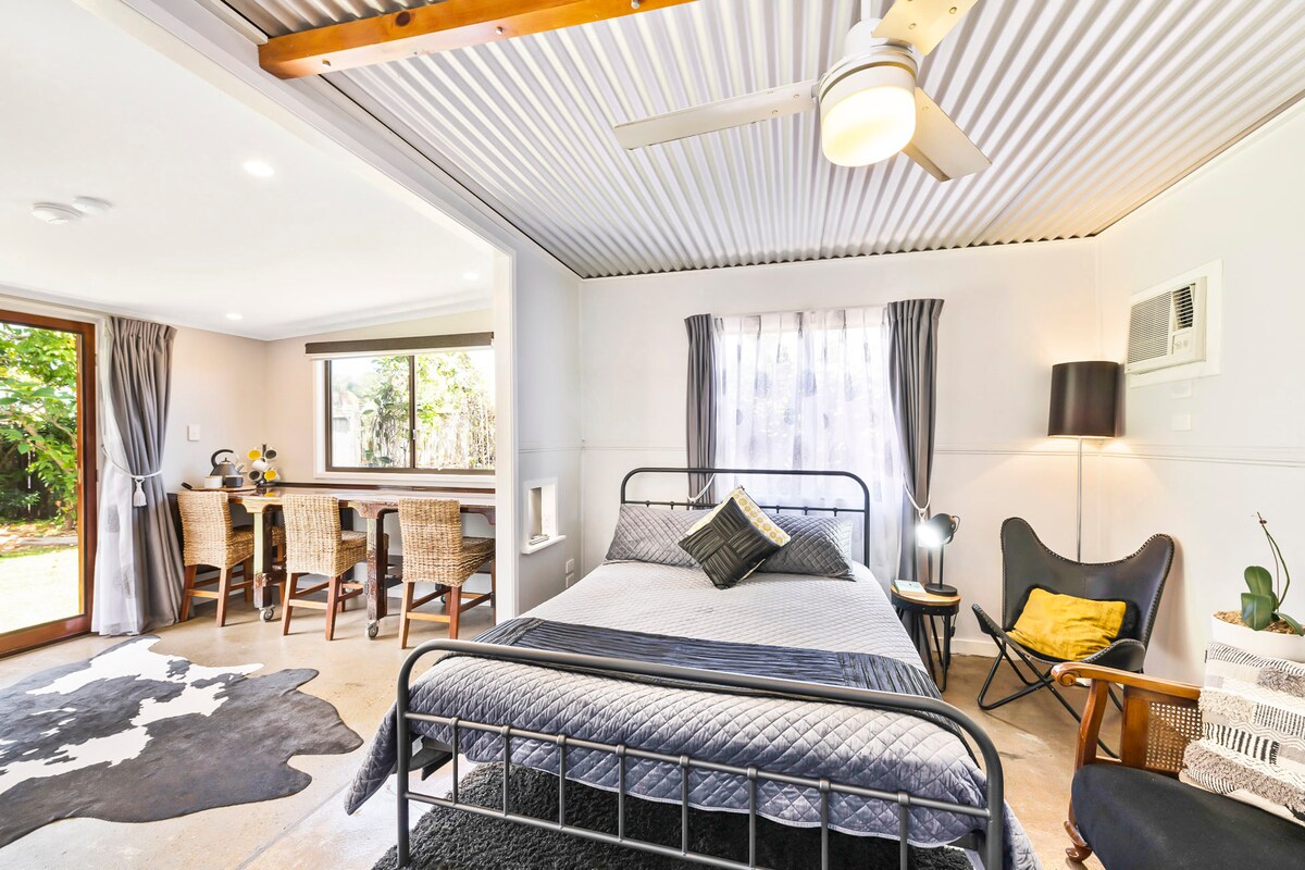Kamra privata u spazjuża toffri sodda queen, kċina żgħira u sufan b' kamra tal-banju aċċessibbli. Barra t-terrazzin tagħti fuq l-art tal-bush u x-Xmara Burnett b' postijiet bilqiegħda u bbq. 10 minuti sa ċentru kummerċjali u ristoranti, 15-il minuta sa Bundaberg CBD. Jekk jogħġbok żomm f' moħħok li m' hemmx Wi-Fi imma għandna Telstra u Optus li qed jirċievu u li tista' tuża t-TV għas-servizzi ta' streaming. Ma naċċettawx klieb fuq il-post, dan huwa għas-sigurtà tagħhom stess peress li l-propjetà tagħna mhix kompletament magħluqa.
