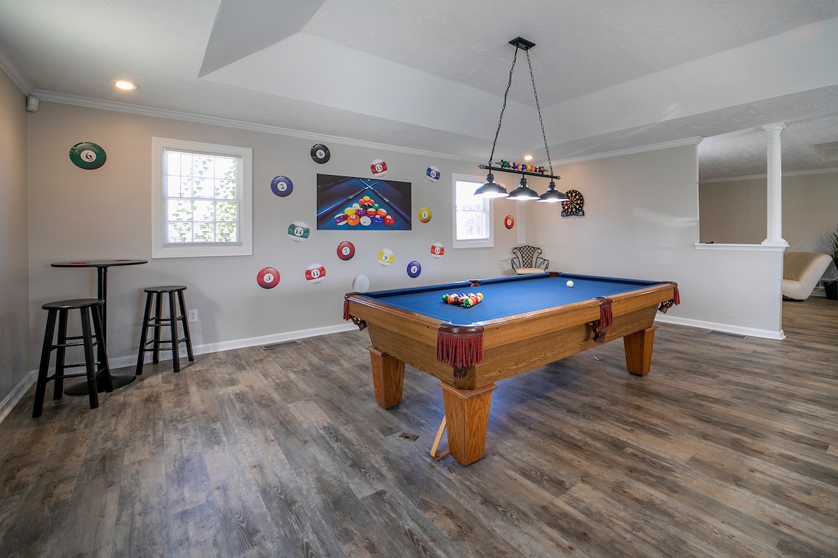 Dar komda u nadifa f 'viċinat kwiet Parkeġġ f' garaxx u fid-daħla tad-dar 3 Kings, 2 Queens, 2 sodod sħaħ, 2 Futons, 1 Loveseat Sufan Irqad, Sufan 1 Magna tal-kafè individwali fil-kmamar b 'kafè kumplimentari Veranda ta' quddiem għall-kwiet. Lura u terrazzin bi grilji tal-gass u tal-faħam u veduta ħadra Tajjeb għall-pets. Niżżel 'l isfel għal "Affarijiet Oħra li għandek Tinnota" għal aktar informazzjoni. 2.5 mili lejn I-265. 3 mili lejn I-64. 20-30 minuta għall-biċċa l-kbira tal-postijiet ġewwa Louisville. 1 mili għal dawl, ħwienet tal-merċa, ristoranti u bank
