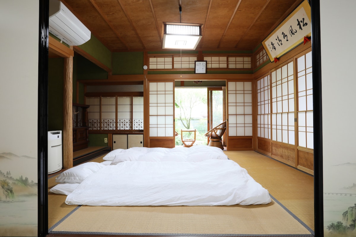 Din hija guesthouse separata ħdejn dar Ġappuniża ta' 131 sena f' żona qalb in-natura rikka bejn Ise-Shima u Kii-Mountains. Hija rinnovata għall-ħajja moderna filwaqt li żżomm ir-raġġi u l-kolonni oriġinali viżibbli. LIMITAT GĦAL GRUPP WIEĦED Kmamar b' kollox madwar 90 m2, Ġnien, Parkeġġ, Kapaċità: sa 4 adulti* (M' hemmx pets, Tpejjepx fil-kmamar) *) bla ħlas għat-tfal li jaqsmu s-sodda mal-oħrajn. SELF-SERVICE Il-kċina, l-oġġetti tal-kċina, il-magna tal-ħasil tal-ħwejjeġ eċċ. huma mgħammra. (Huwa stil li tgħin lilek innifsek)