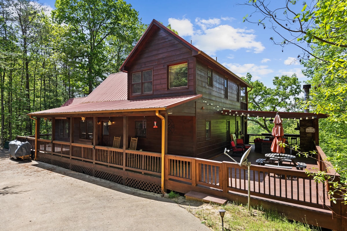 Iż-żjara tiegħek ġewwa Chasing Fireflies se tkun esperjenza li ma tintesiex! Din il-kabina ħelwa hija taħlita perfetta ta 'moderna u rustika. Diffiċli ssib post f' din il-kabina mingħajr veduti tax-xedaq! 3 MILI LEJN IĊ-ĊENTRU TAX-XIFER BLU 2 KING SUITES B 'VEDUTI INKREDIBBLI 2 KMAMAR TAL-BANJU LUSSUŻI U NOFS FIREPLACE TAL-GASS FUQ ĠEWWA KĊINA MGĦAMMRA B 'KOLLOX 2 GVERTI TAD-DIVERTIMENT B 'FIREPLACES TAL-ĠEBEL, ŻONA TAL-IKEL, BAR IMXARRAB, SWING, PING PONG, U BARRA MINN DIN ID-DINJA HOT TUB INTERNET B 'VELOĊITÀ TAJBA PARKEĠĠ GĦAL 3 VETTURI