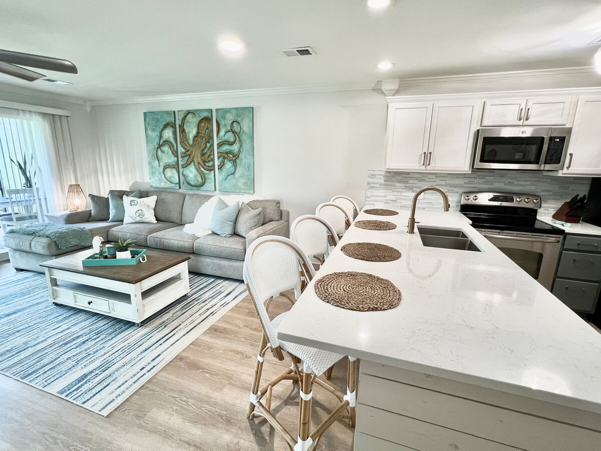 Se tkun qed toqgħod ħdejn il-Golf bir-ramel taz-zokkor f' kumpless magħluq b' pixxina msaħħna u hot tub-perfett għall-familji kbar. Gawdi minn post għall-parkeġġ privat B'XEJN, gallarija privata u magna tal-ħasil u nixxiefa bid-deterġent ipprovdut. Ġewwa: banek tal-granit, TVs f' kull kamra u suite ewlenija king b' banju mgħaddas u doċċa mixgħula. It-tieni kamra tas-sodda għandha reġina, it-tielet wieħed jorqod ħamsa f' bunks. Kċina mgħammra b' Keurig u pods. Ikri 25+ sakemm ma jkunx hemm dmirijiet attivi militari