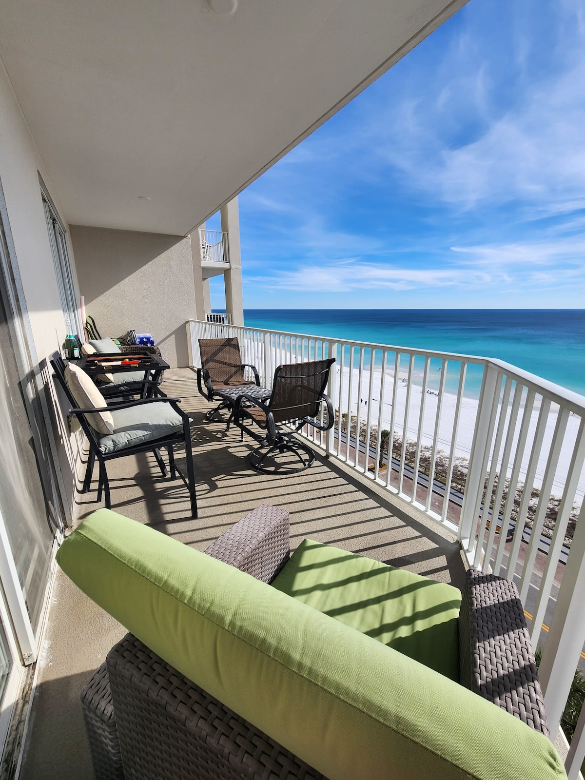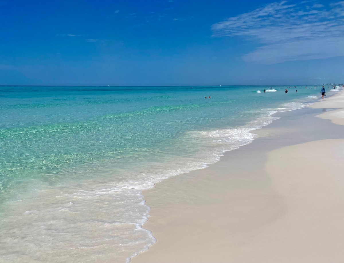 Aġġornat ġdid 1 kamra tas-sodda/ 2 banju condo b 'bunkbeds mibnija. Tinsab fuq in-naħa tal-bajja fuq id-19-il sular b 'veduti panoramiċi tal-ilmijiet żmerald u bajjiet tar-ramel abjad perfett Il-Golf tal-Messiku. Kċina mgħammra kompletament b 'countertops tal-granit ġodda u apparat tal-lavanja. Internet b 'veloċità għolja u affidabbli b' veloċità għolja f' kull parti. Il-kumditajiet tar-resort jinkludu pixxina kbira u hot tub, bar tiki ħdejn il-bajja li jservi xorb iffriżat u birra. Kafetterija mill-aqwa li sservi kolazzjon sħun, pizza, sandwiċis u insalati.